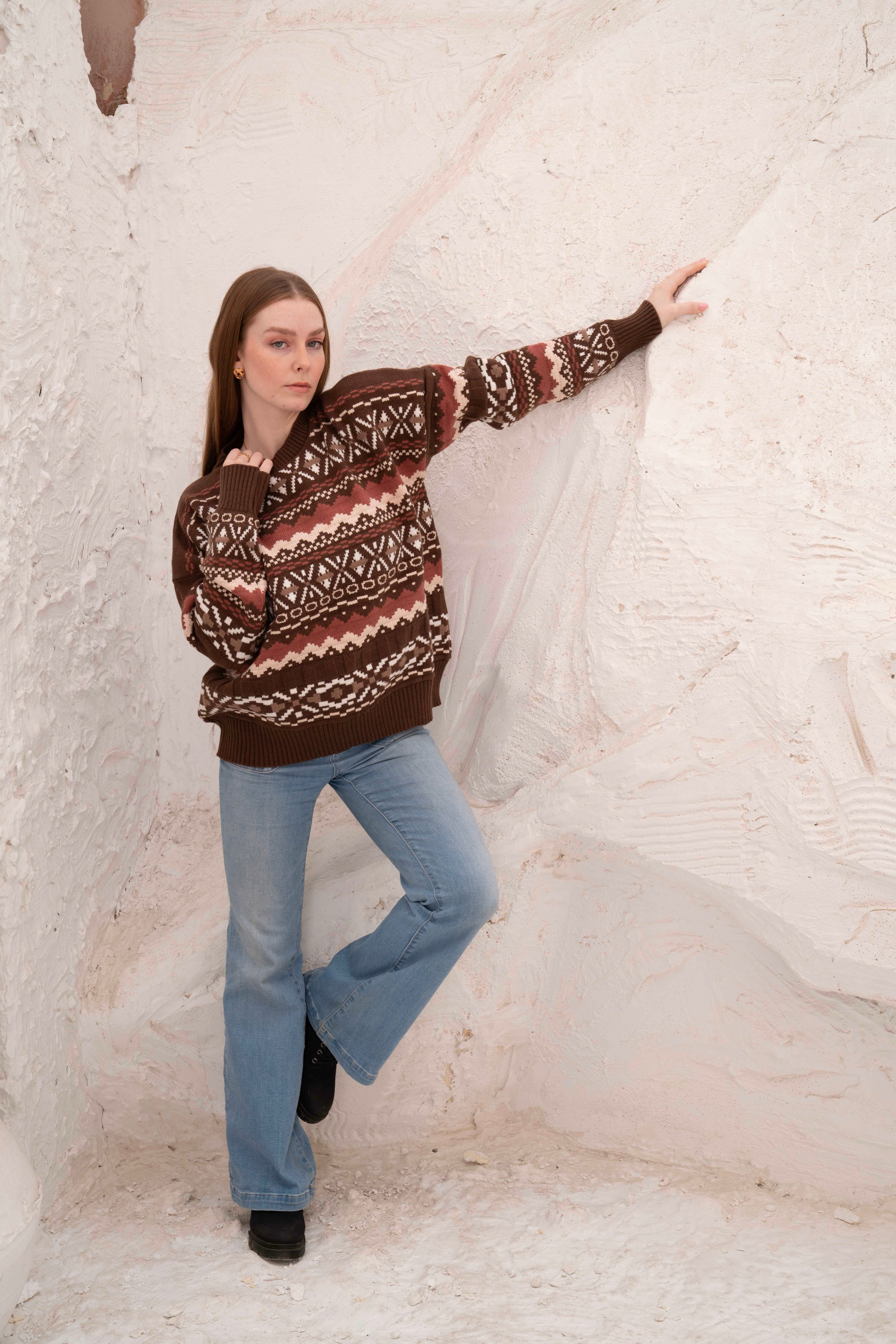 Stay warm and stylish this winter with our premium knit pullover for women, designed to add a touch of sophistication to your wardrobe. Featuring a unique and intricate patterned design, this sweater is perfect for casual outings, cozy evenings, or layering for a chic look. The soft and durable knit material ensures all-day comfort while providing excellent warmth for cooler weather.