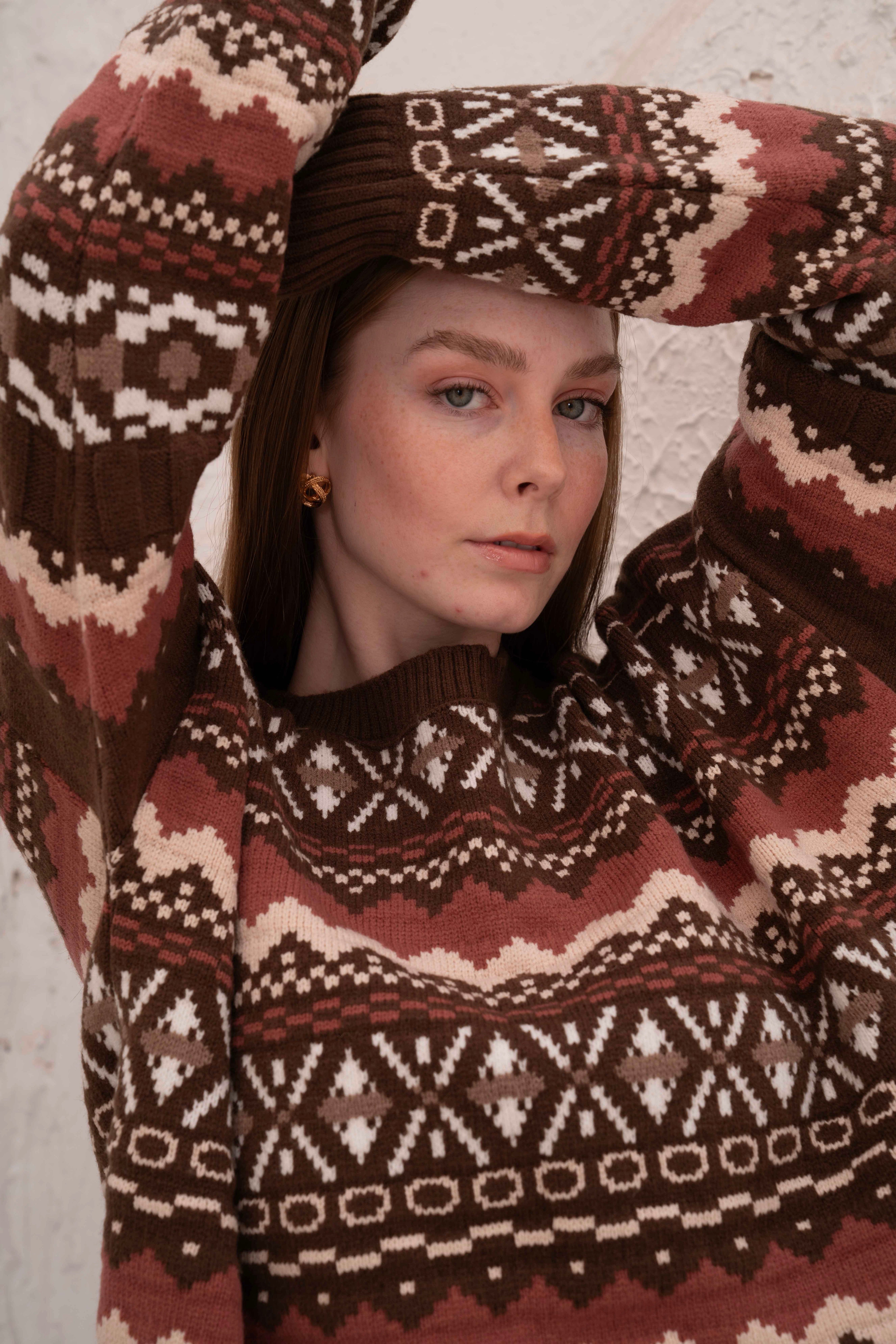 This sweater is perfect for women searching for "patterned sweaters for women in Egypt", "winter knitwear for women", or "trendy women’s sweaters for casual wear."