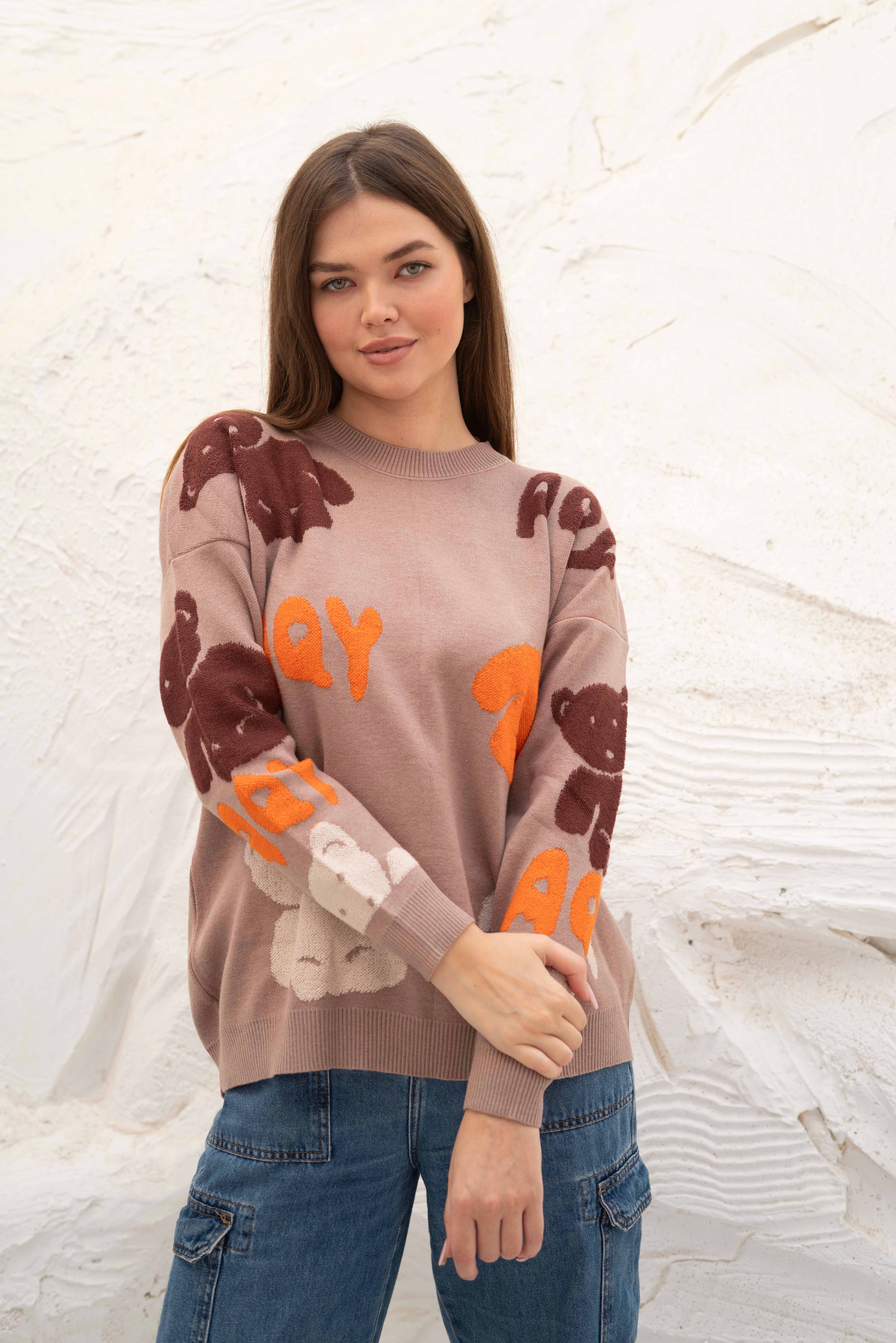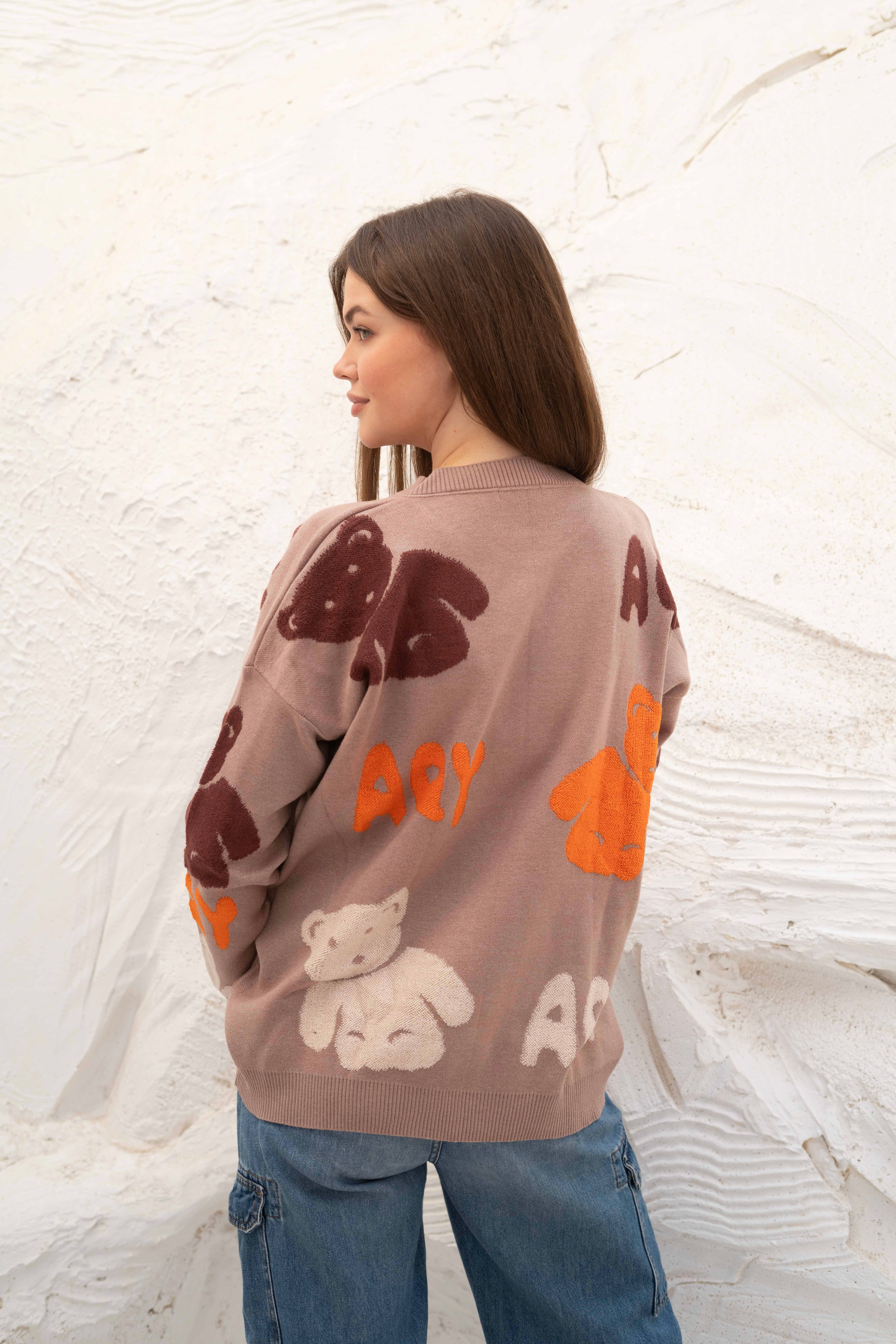 Stay cozy and trendy with our Teddy Bear Oversized Knitted Sweater for Women. This adorable sweater features a relaxed, oversized fit and playful teddy bear patterns, perfect for adding a cute and casual vibe to your winter wardrobe. Made from soft, high-quality knit fabric, it provides warmth and comfort without compromising style. Pair it effortlessly with jeans or leggings for a relaxed day out or cozy nights in. Ideal for fashion-forward women who love stylish statement pieces.