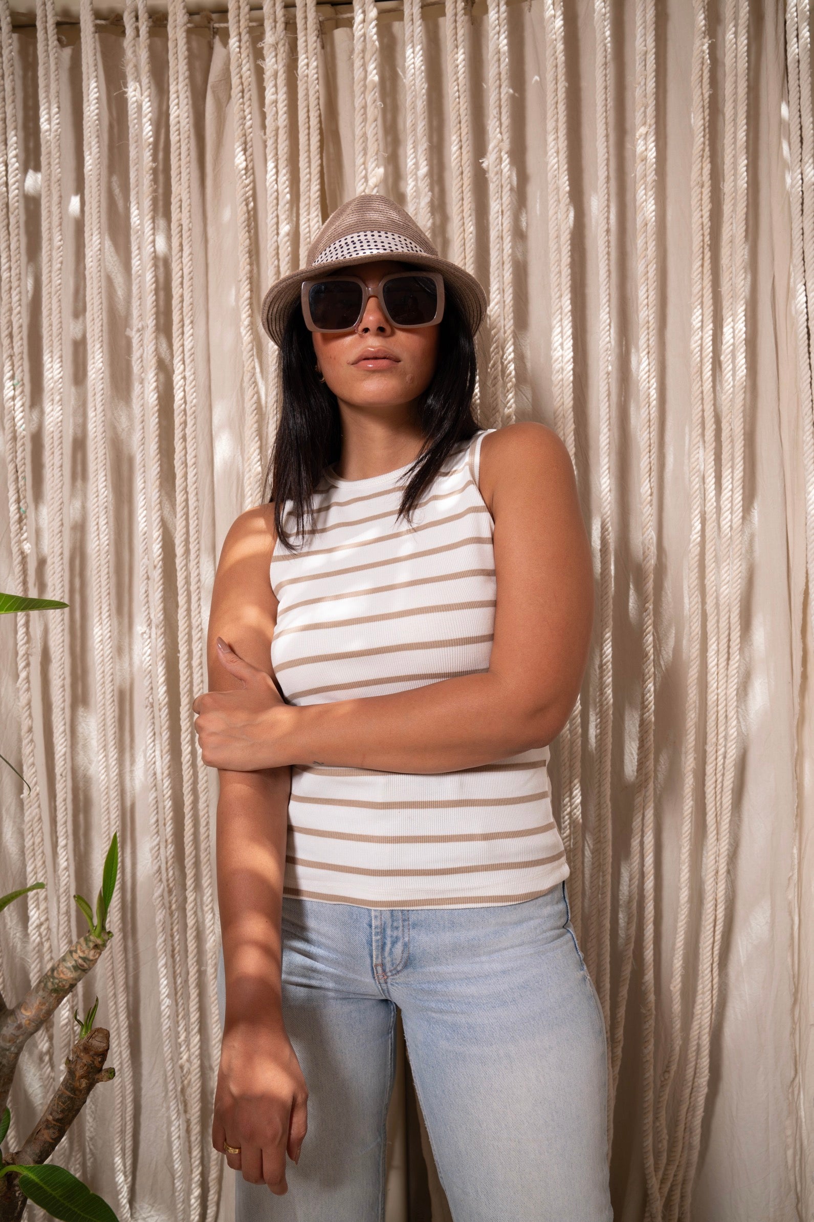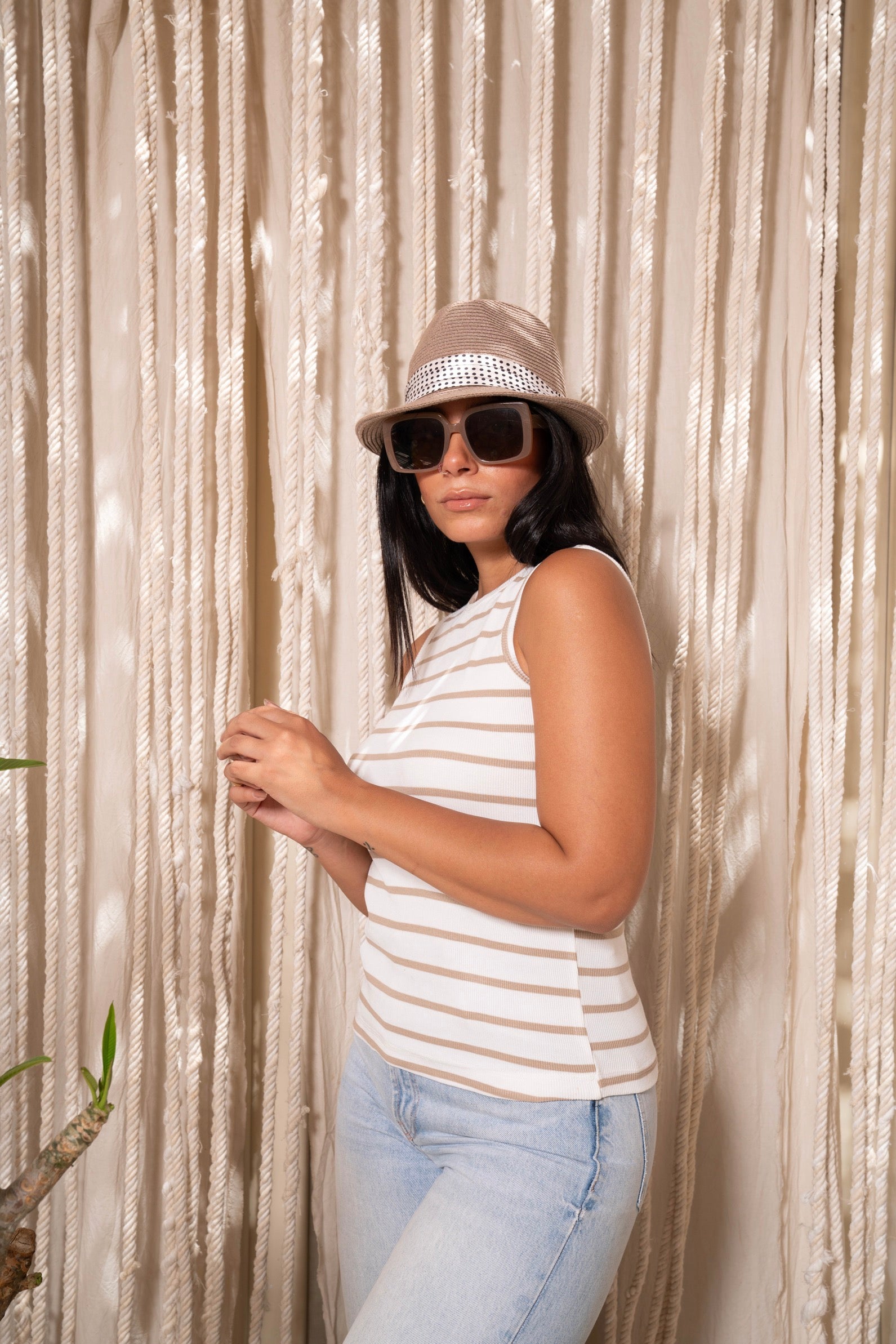 Whether you're heading to a casual brunch or a summer outing, this Striped Sleeveless Top will keep you looking stylish and feeling comfortable. Experience the luxury of high-quality cotton and the timeless appeal of classic stripes with this essential wardrobe addition.