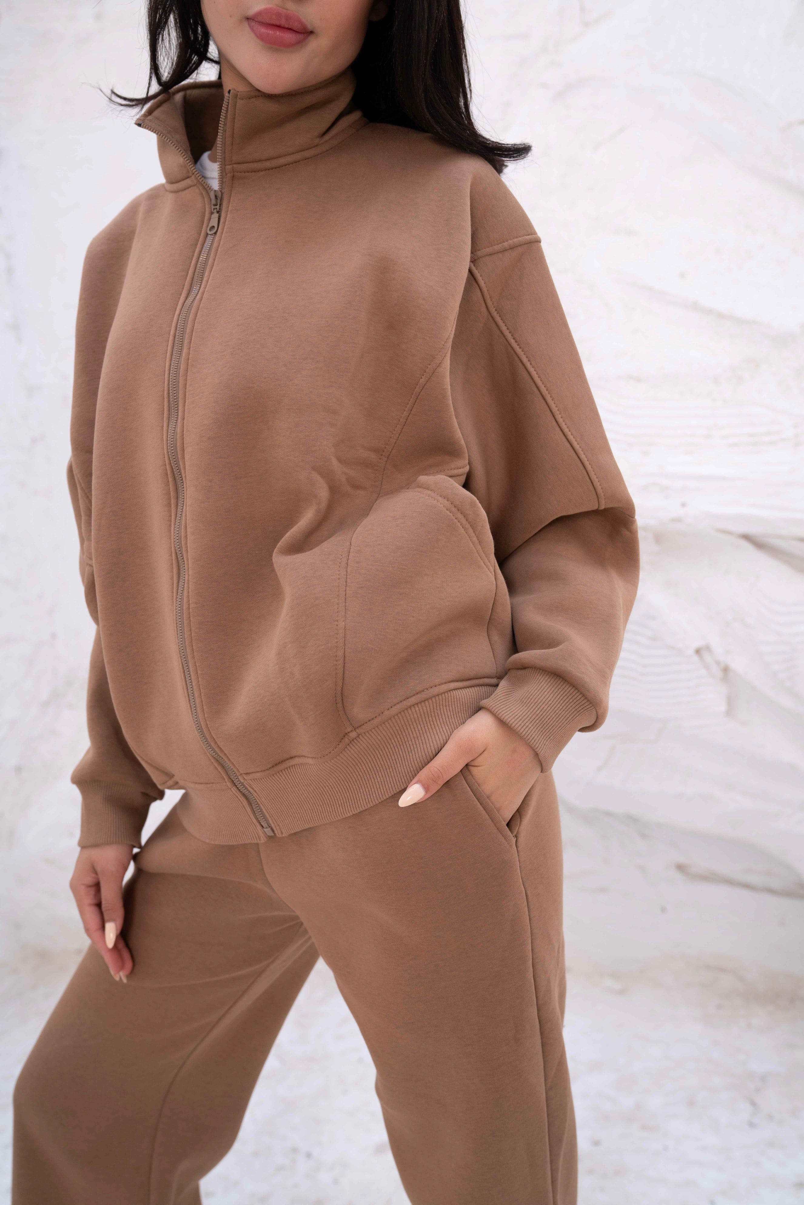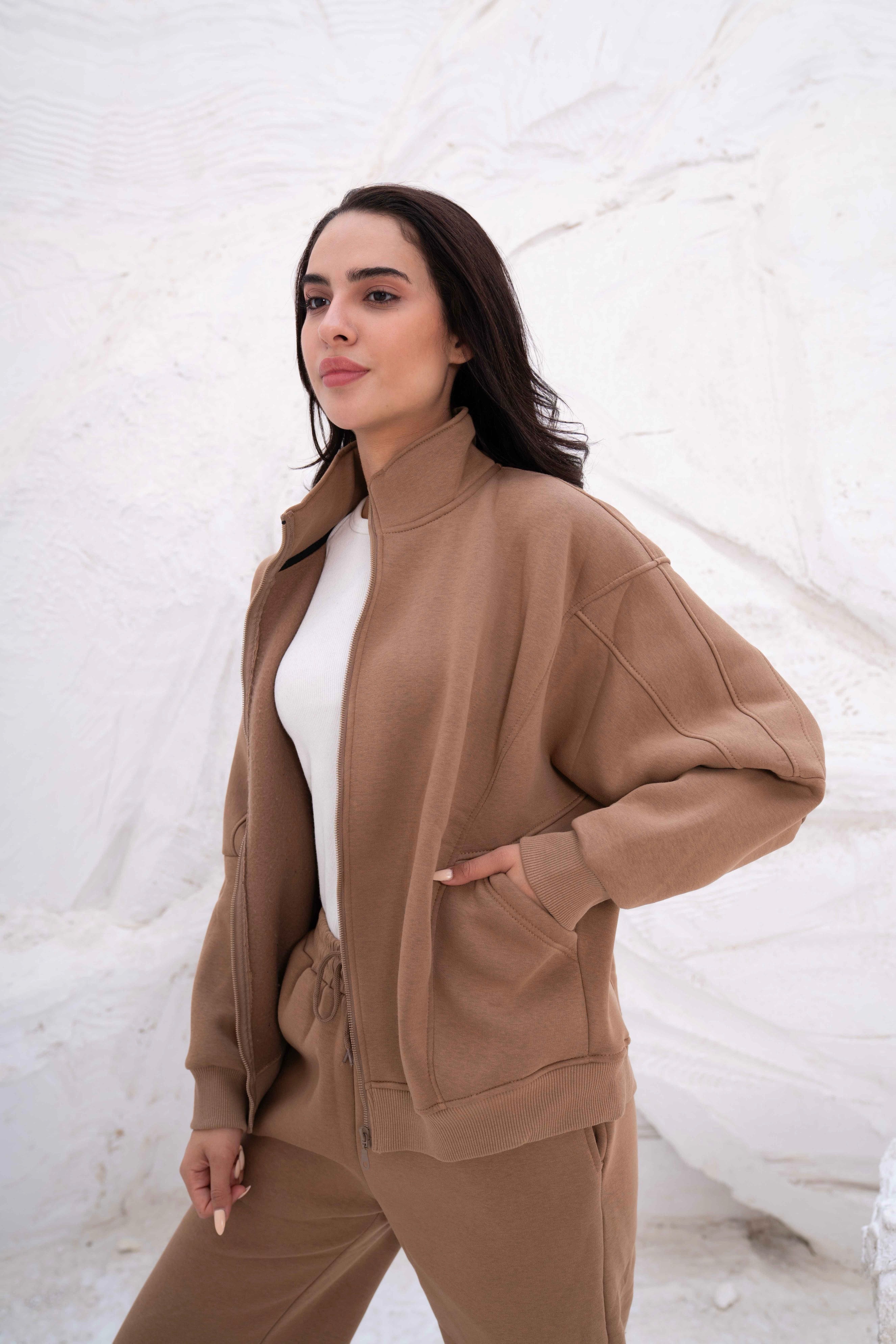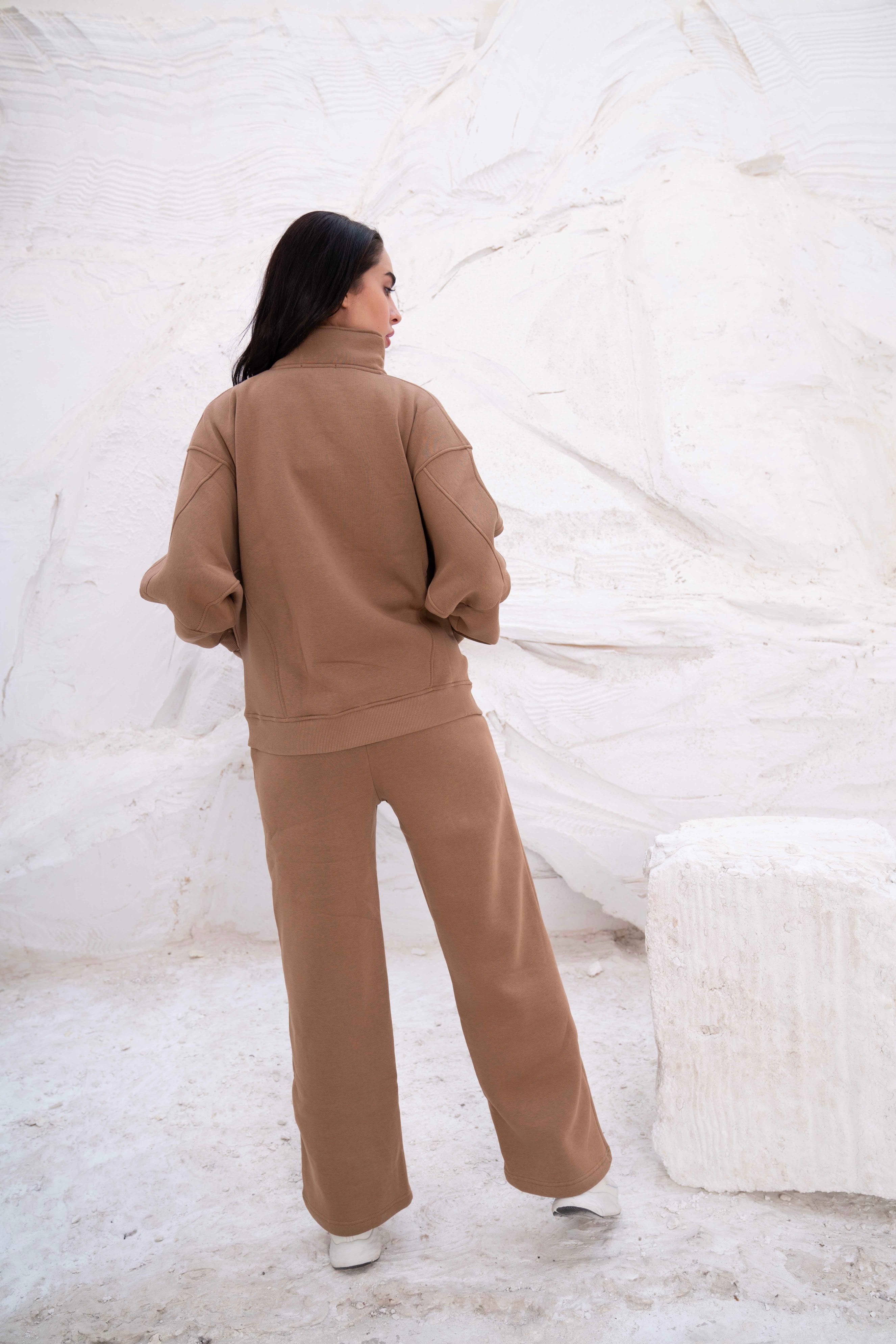 Discover the ultimate blend of style and comfort with our Women's Cozy Two-Piece Suit, designed for modern women in Egypt who value effortless elegance. Made from premium, soft-touch fabric, this chic suit features a relaxed-fit zip-up jacket with a high collar and matching wide-leg trousers. The neutral beige tone makes it perfect for casual outings, cozy at-home wear, or even a stylish airport look.