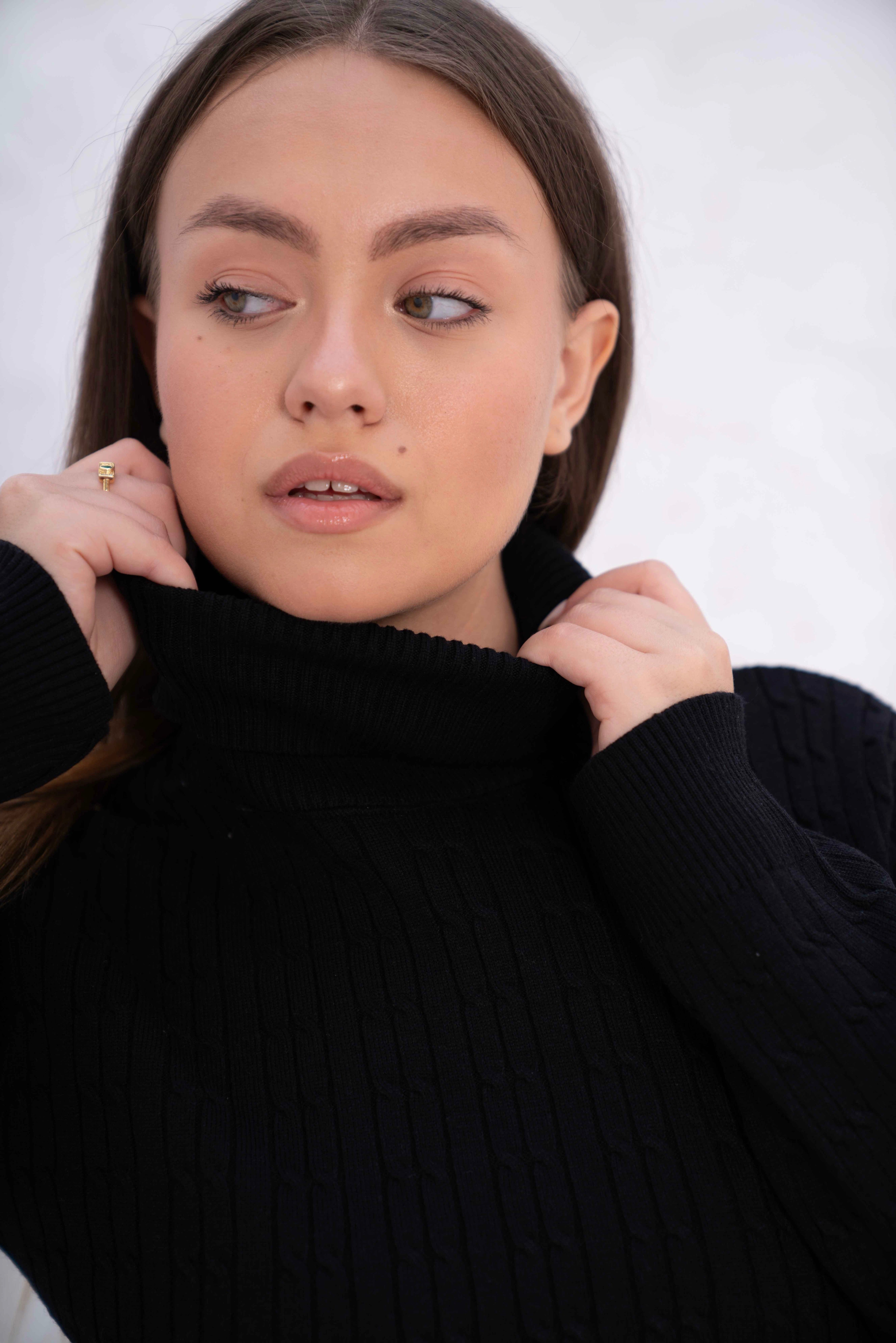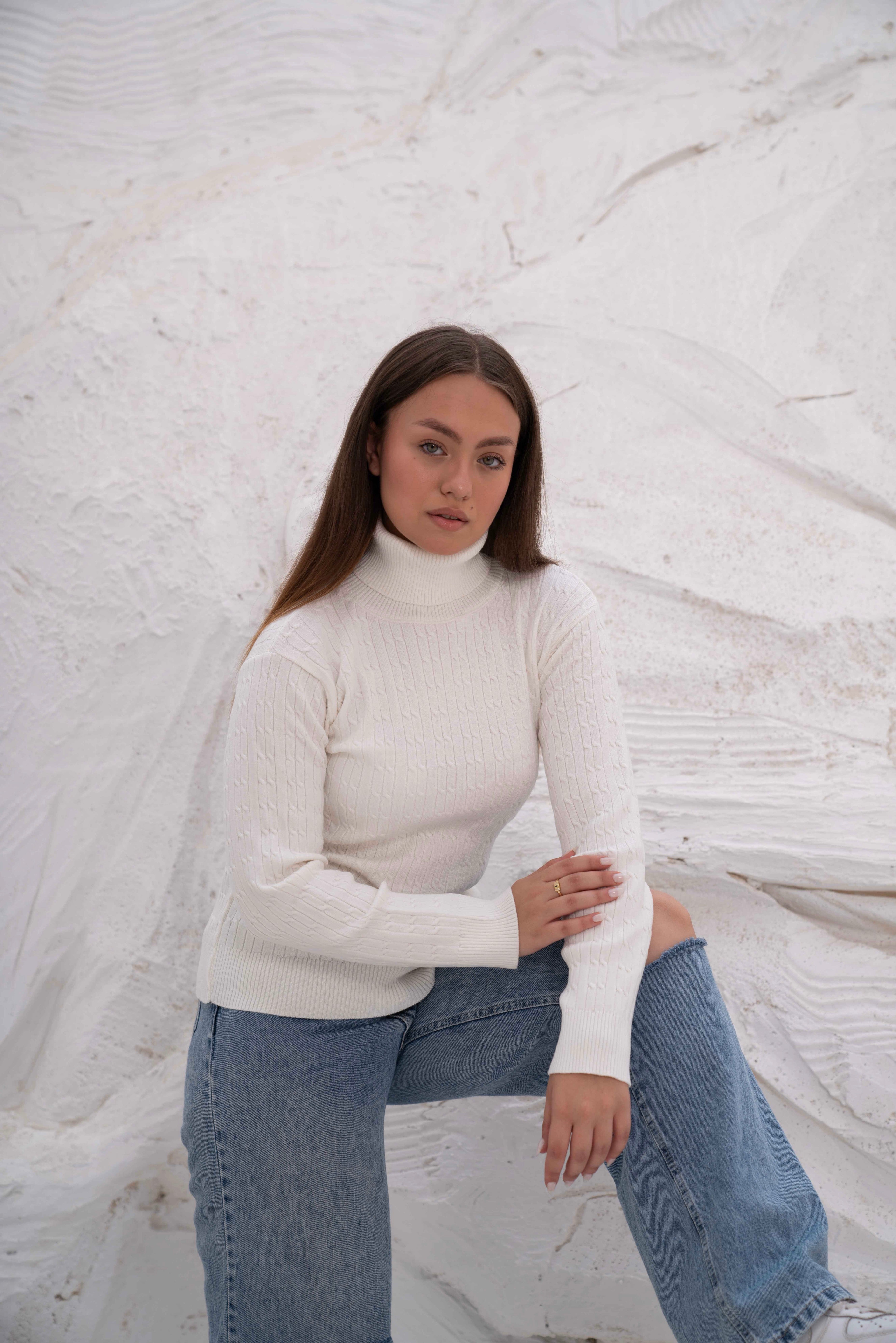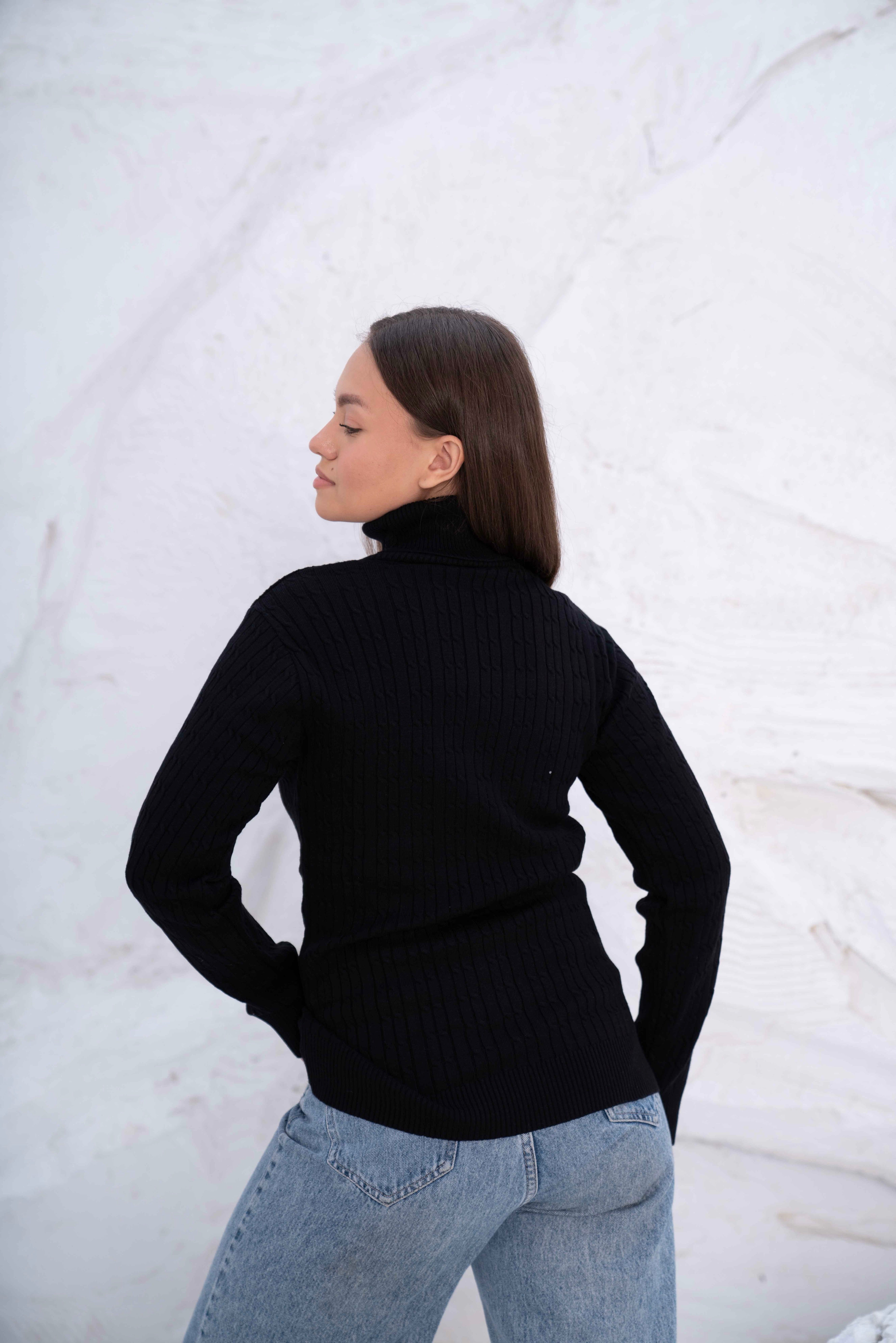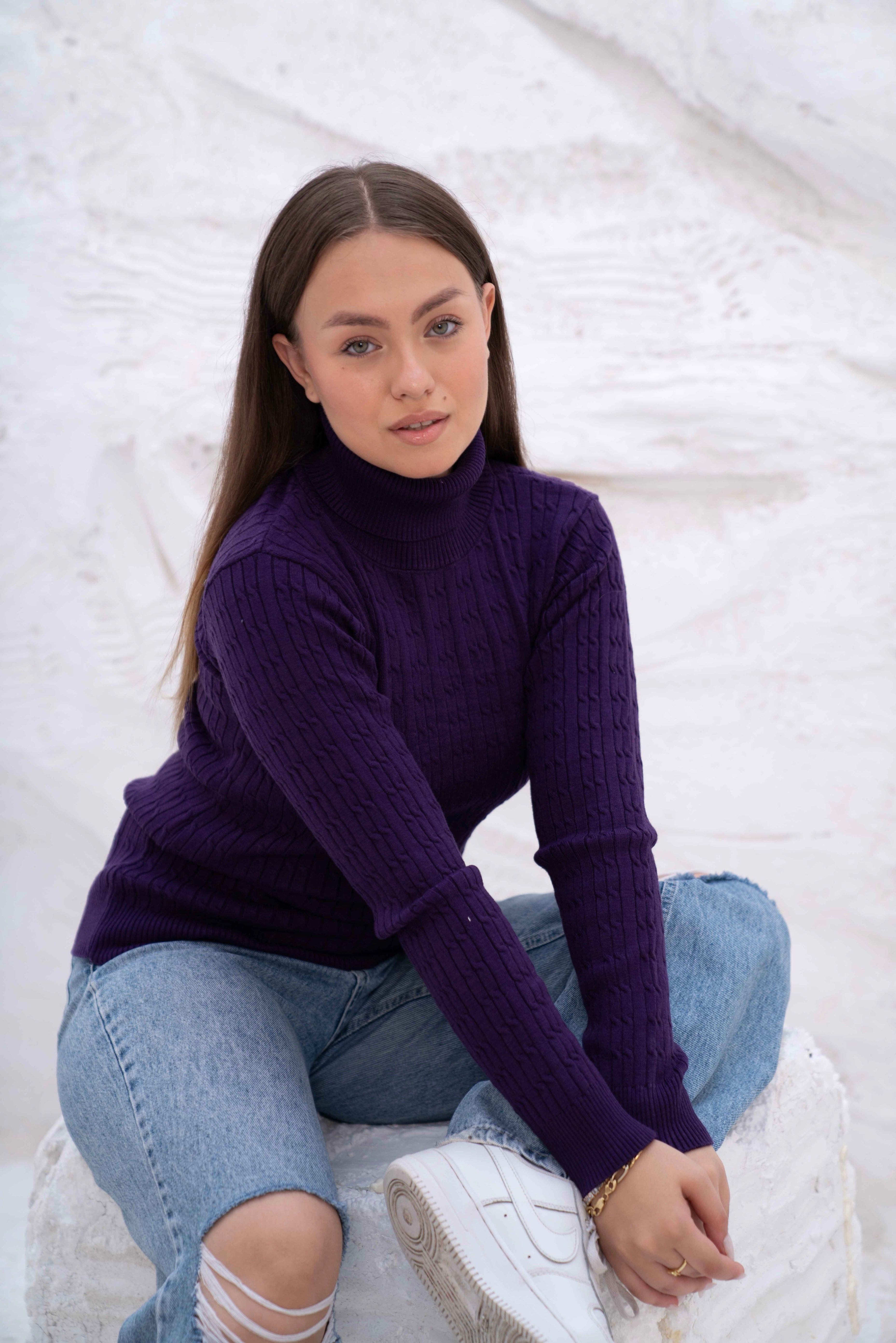 Elevate your everyday wardrobe with this timeless cable-knit turtleneck sweater. Crafted for comfort and style, this versatile piece features a textured cable-knit design that adds depth and elegance to your look. The high turtleneck provides extra warmth while maintaining a sophisticated silhouette, making it a perfect choice for chilly days or casual outings. Whether paired with jeans for a relaxed vibe or layered under a blazer for a polished appearance, this sweater is an essential addition to your collection. Designed with a flattering fit and premium quality, it ensures you stay cozy without compromising on style.
