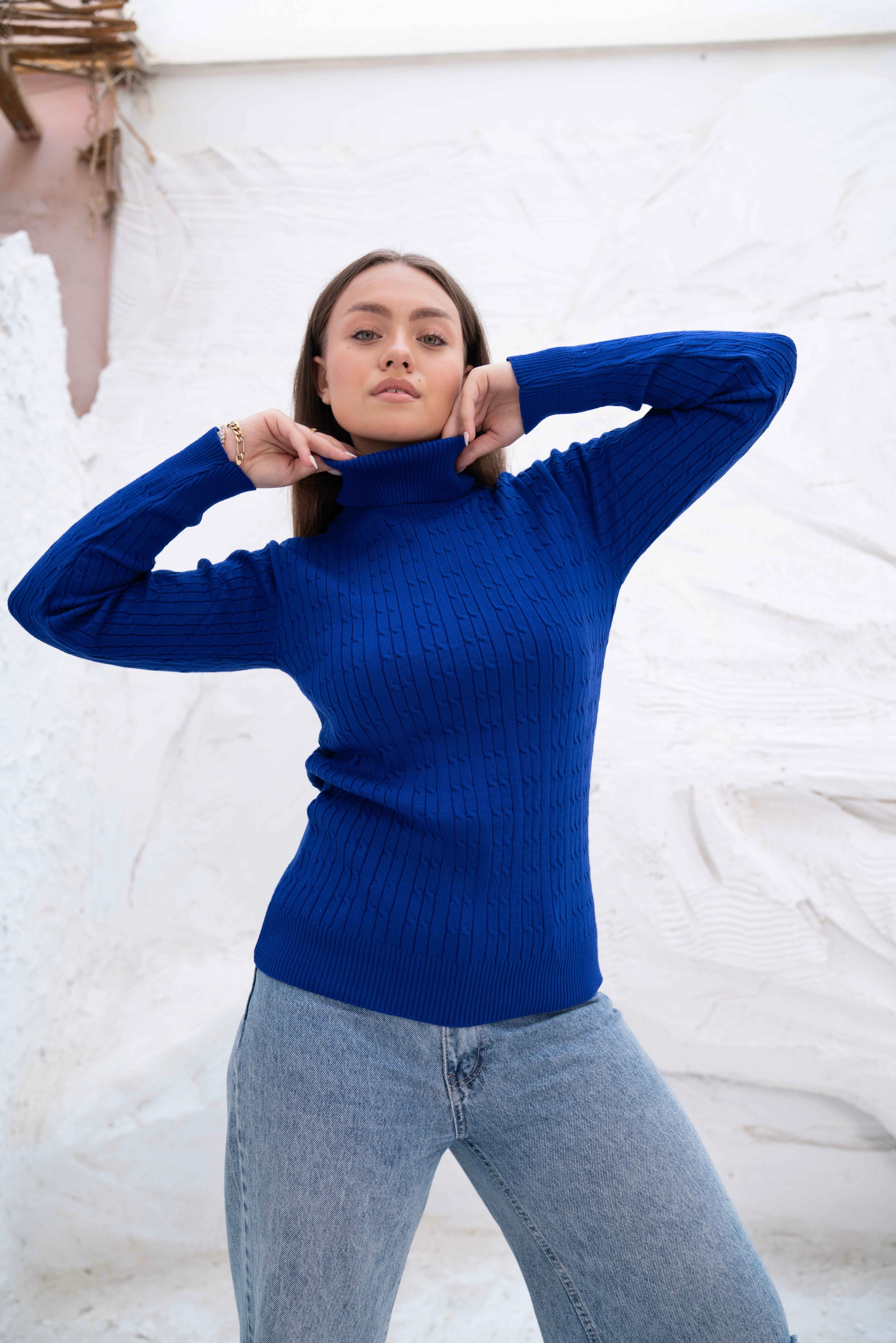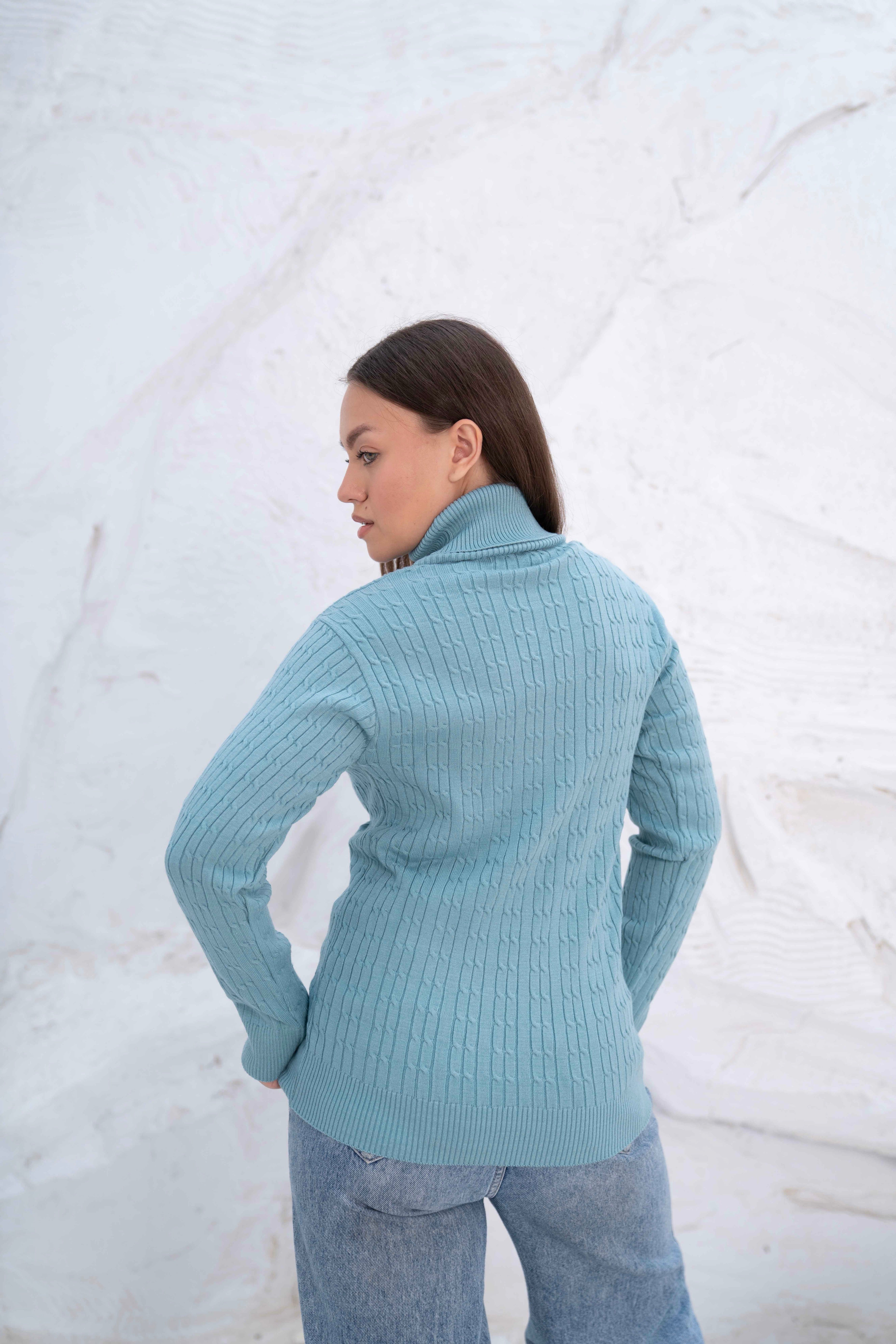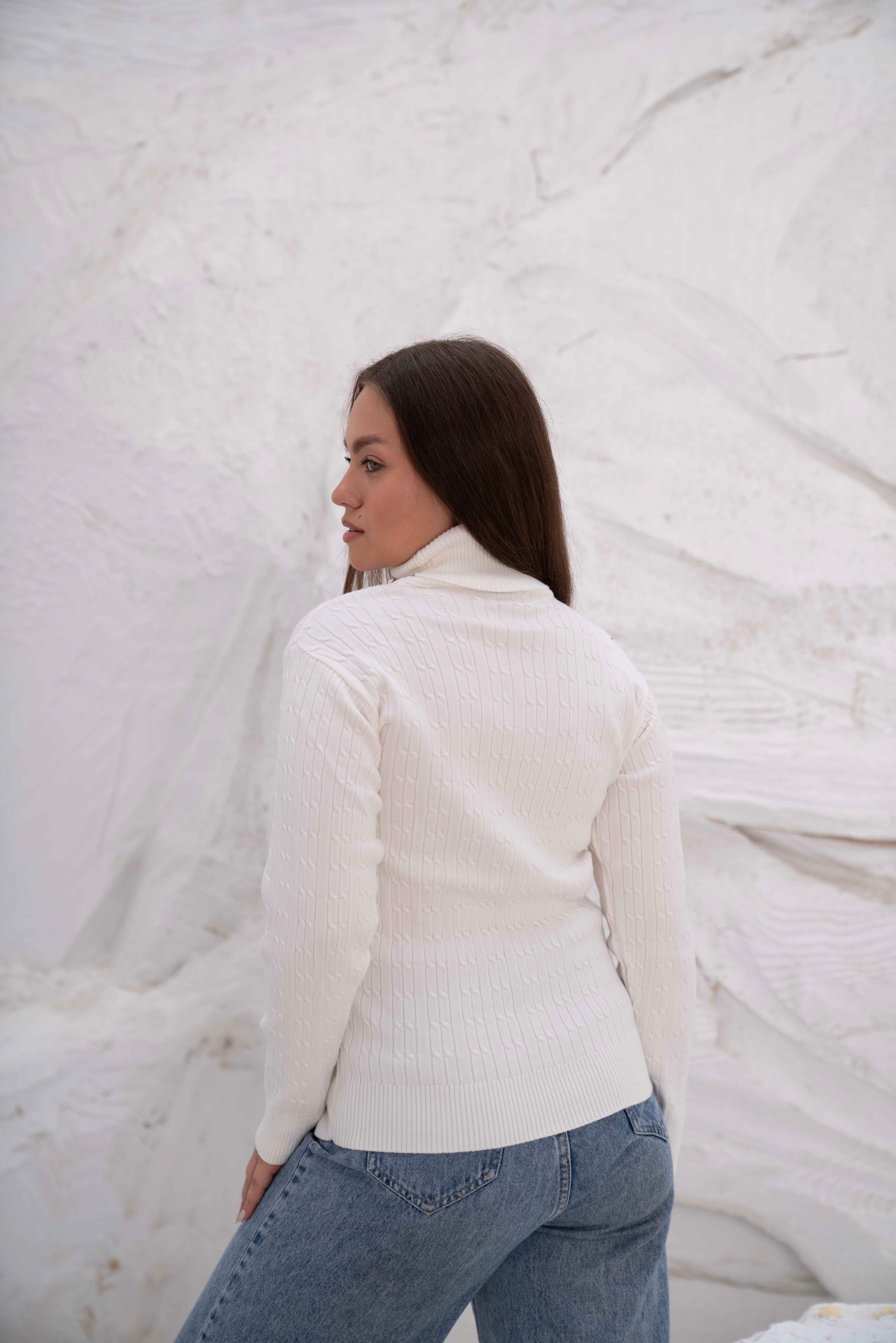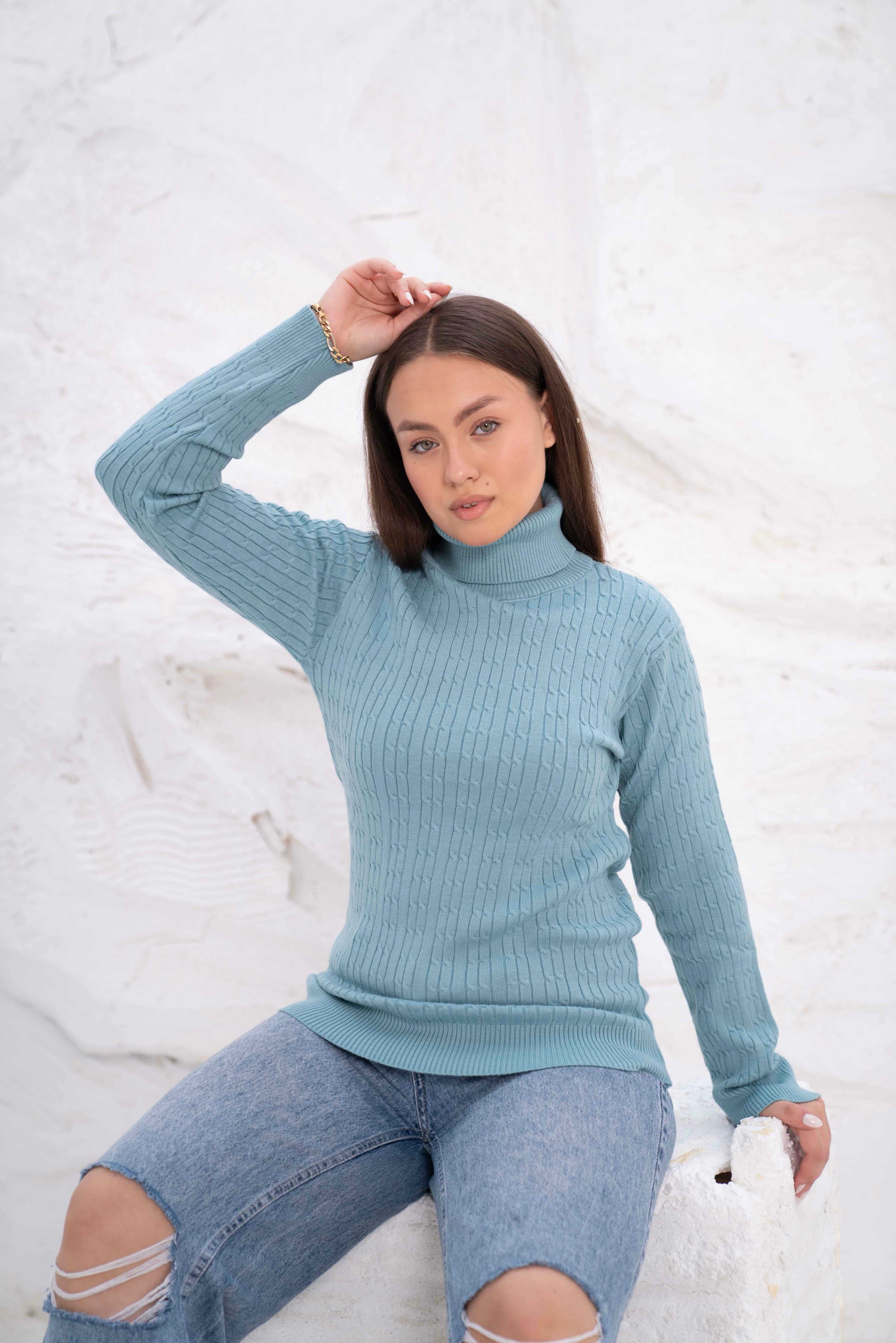 Elevate your everyday wardrobe with this timeless cable-knit turtleneck sweater. Crafted for comfort and style, this versatile piece features a textured cable-knit design that adds depth and elegance to your look. The high turtleneck provides extra warmth while maintaining a sophisticated silhouette, making it a perfect choice for chilly days or casual outings. Whether paired with jeans for a relaxed vibe or layered under a blazer for a polished appearance, this sweater is an essential addition to your collection. Designed with a flattering fit and premium quality, it ensures you stay cozy without compromising on style.