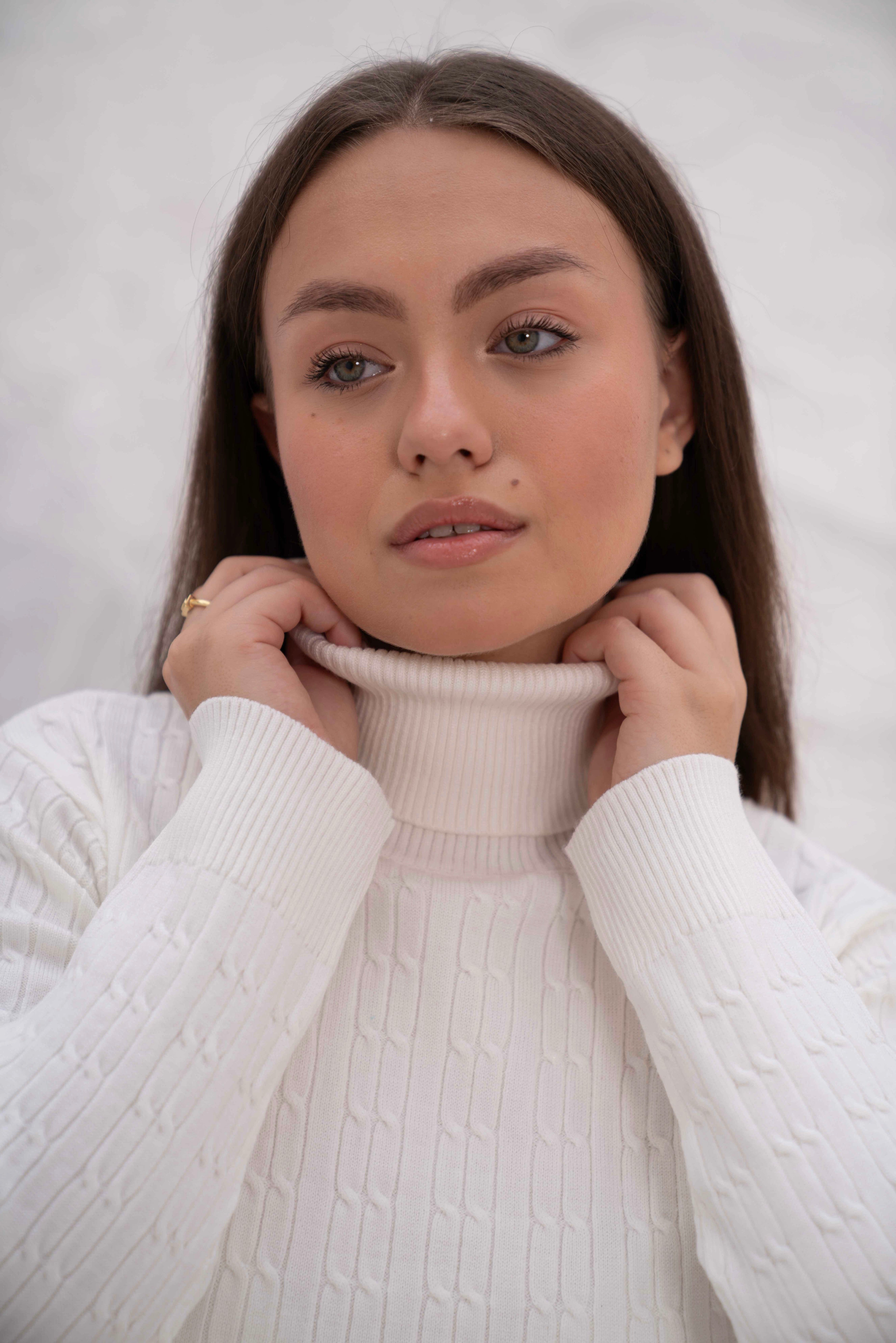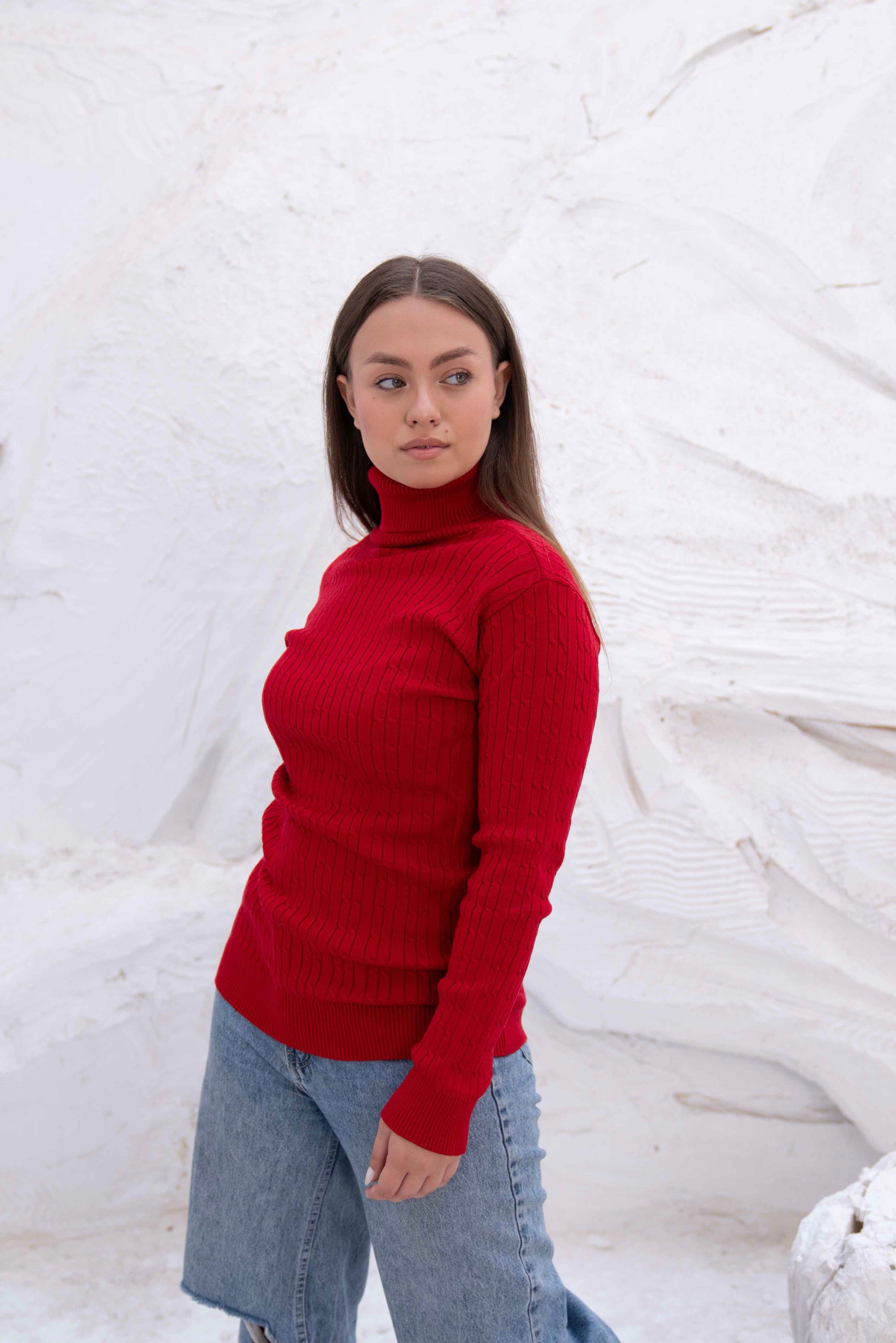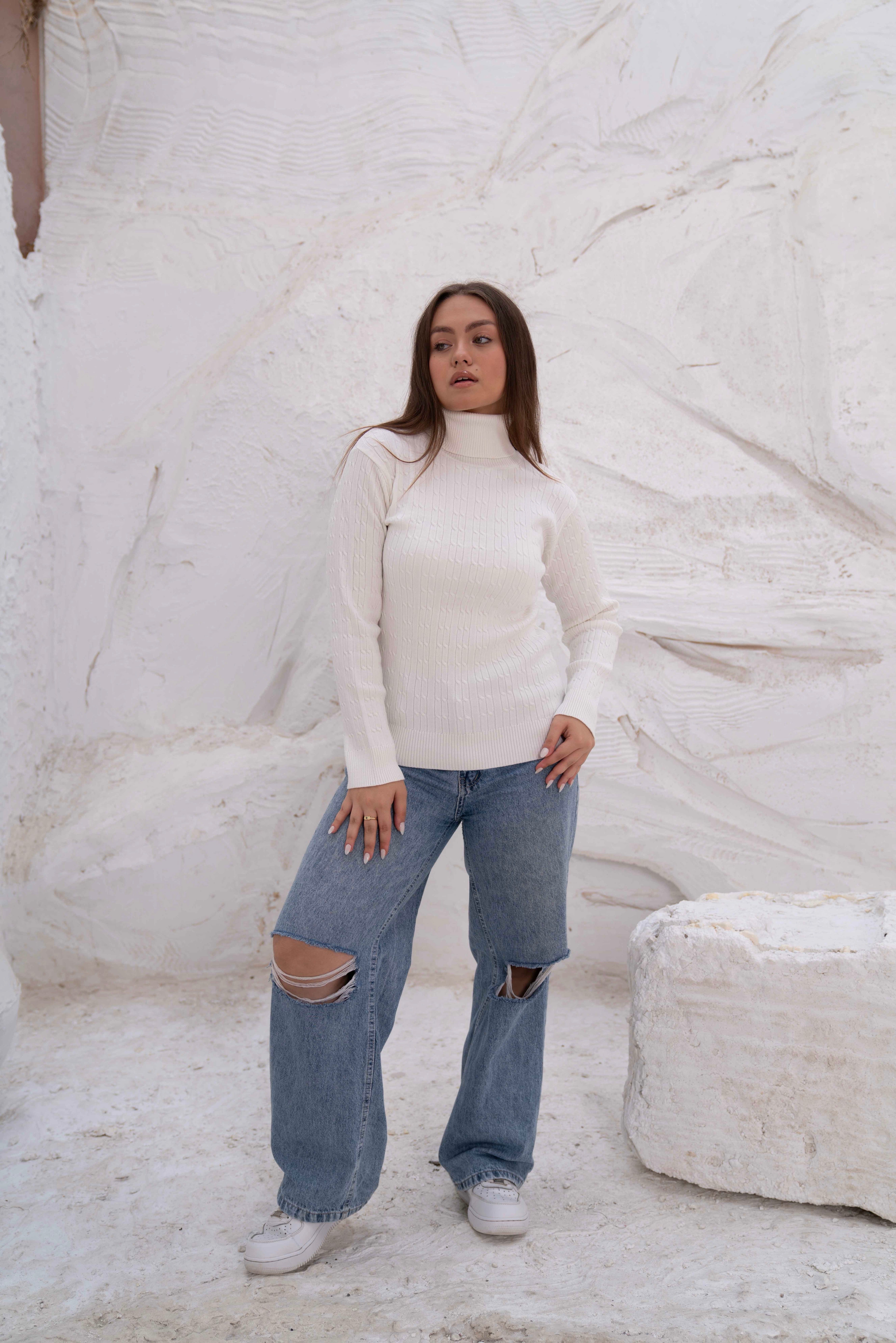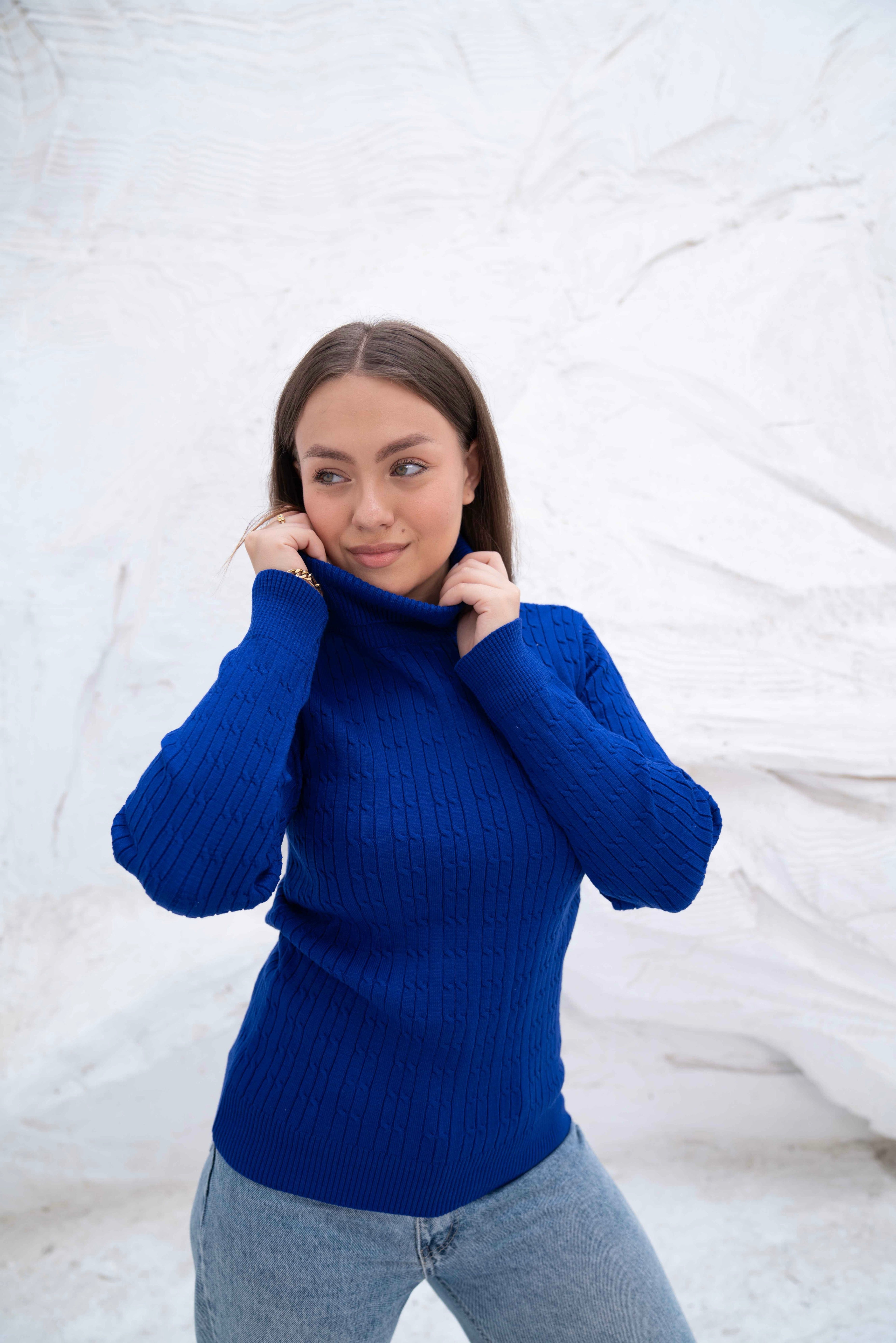 Elevate your everyday wardrobe with this timeless cable-knit turtleneck sweater. Crafted for comfort and style, this versatile piece features a textured cable-knit design that adds depth and elegance to your look. The high turtleneck provides extra warmth while maintaining a sophisticated silhouette, making it a perfect choice for chilly days or casual outings. Whether paired with jeans for a relaxed vibe or layered under a blazer for a polished appearance, this sweater is an essential addition to your collection. Designed with a flattering fit and premium quality, it ensures you stay cozy without compromising on style.