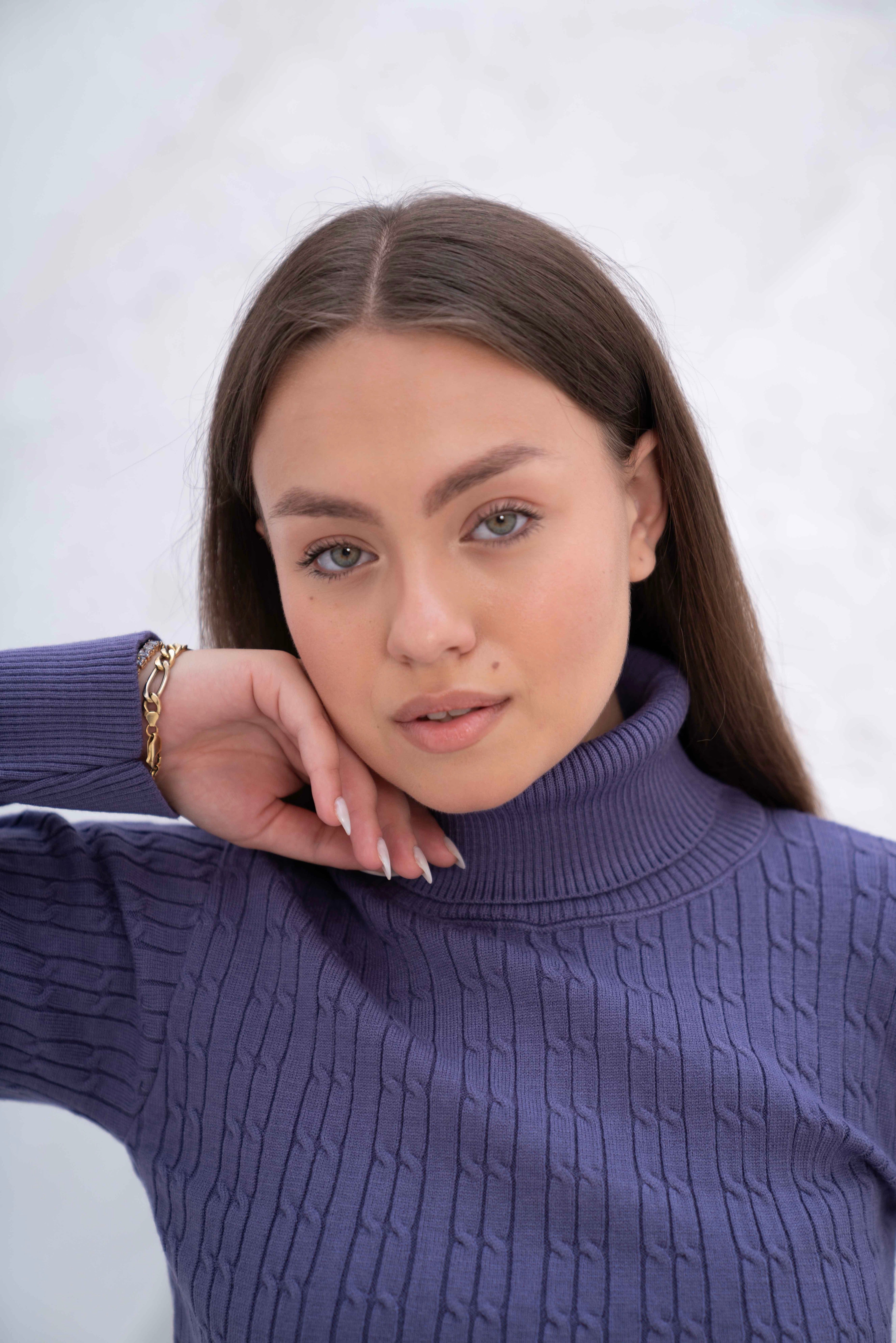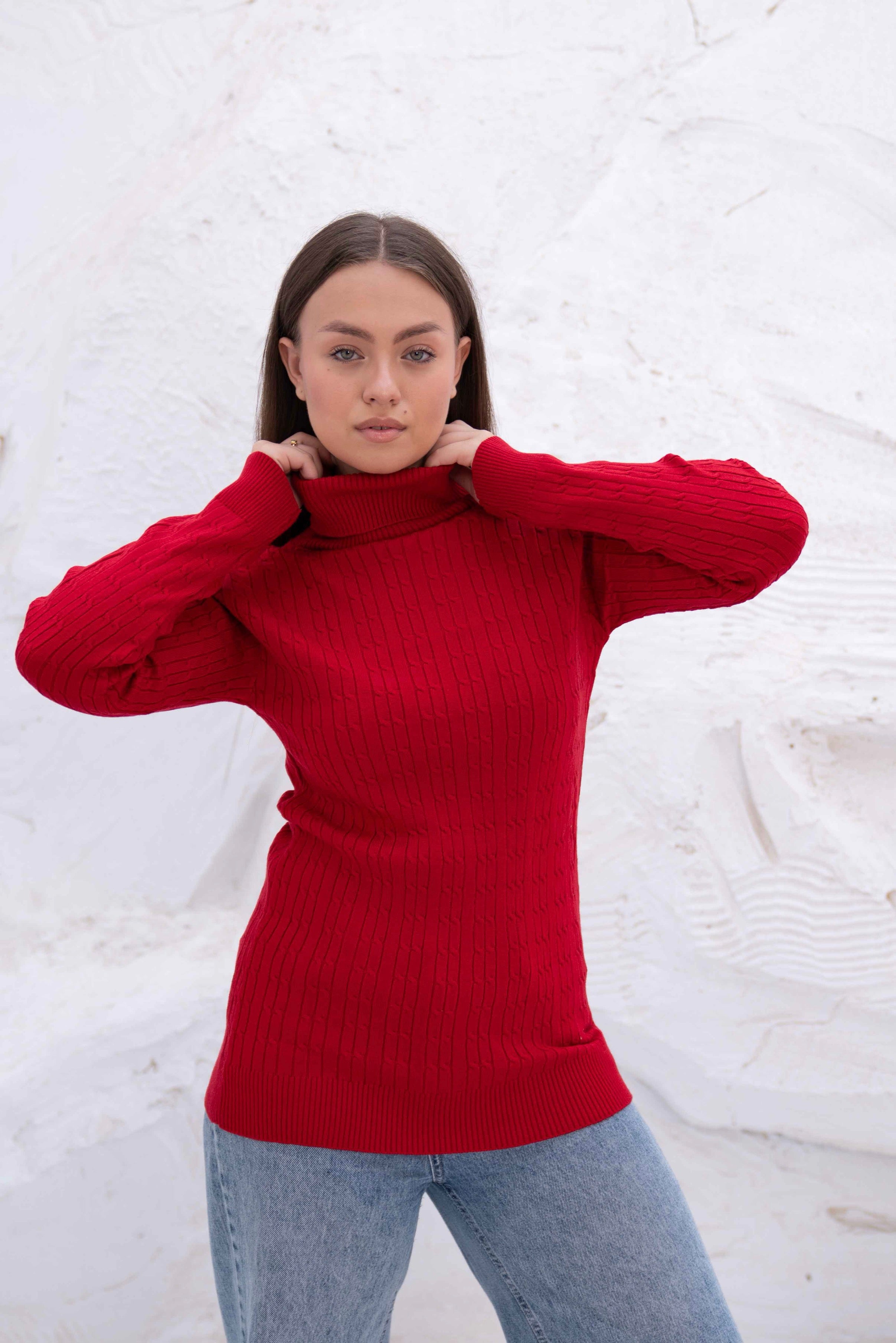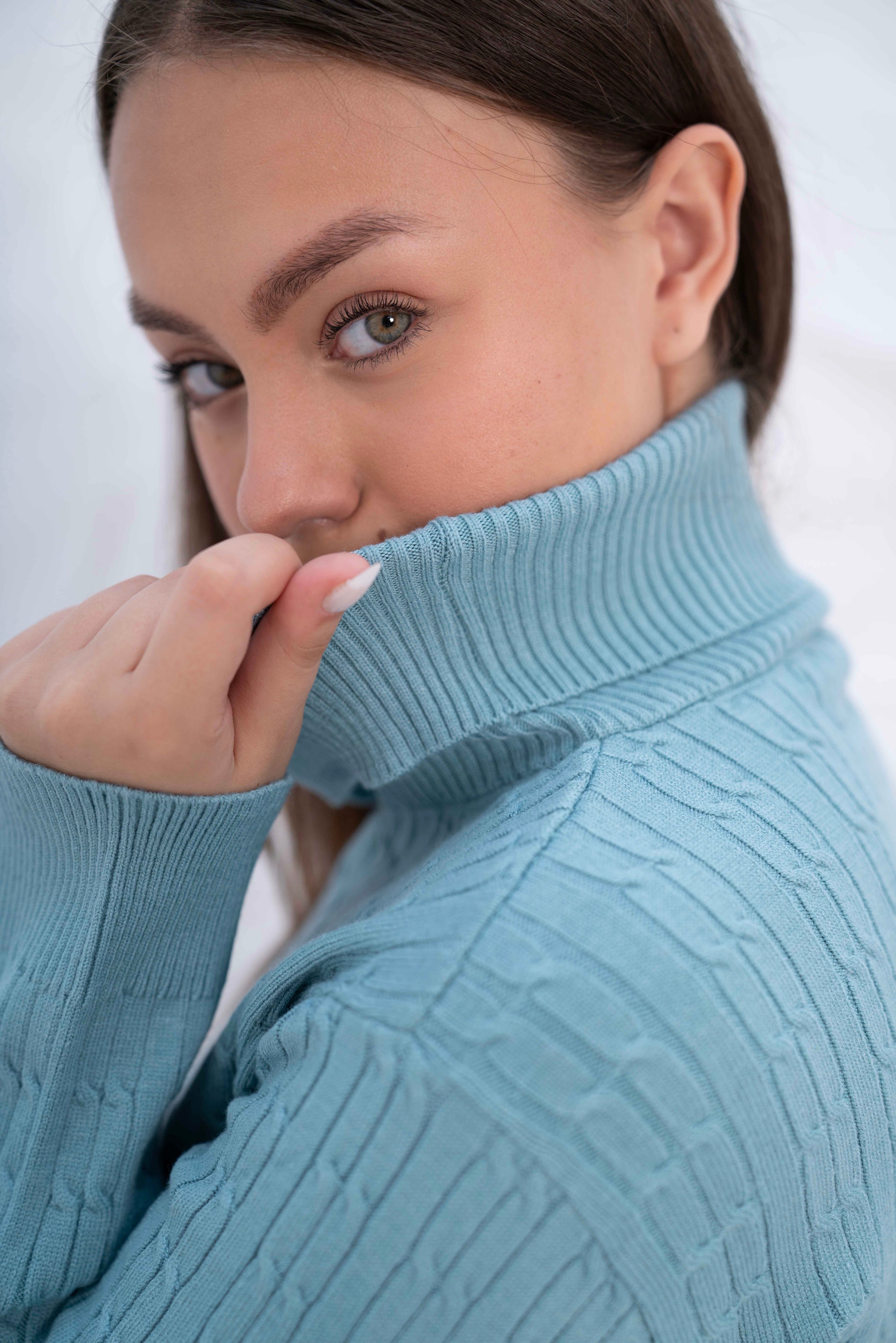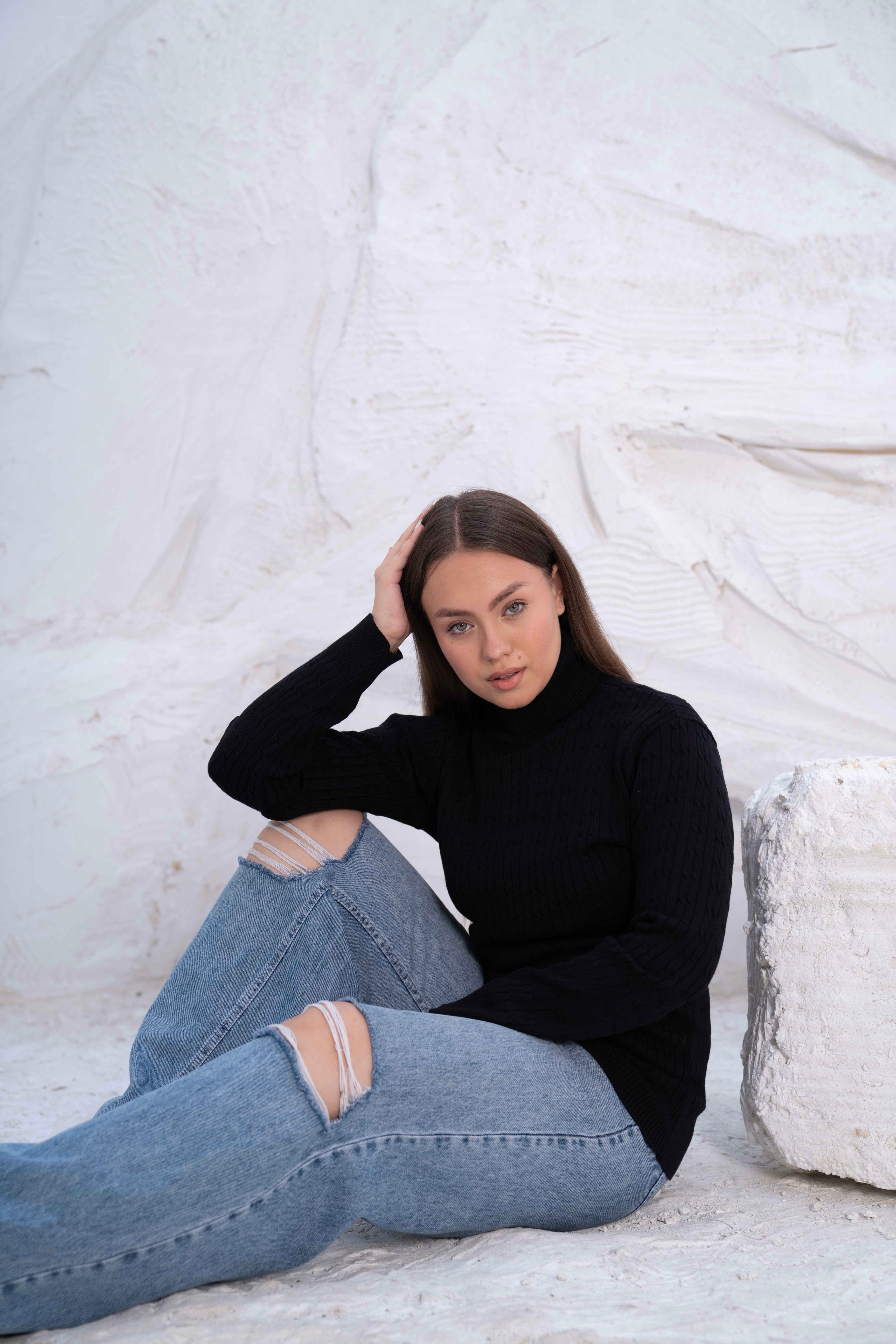 Elevate your everyday wardrobe with this timeless cable-knit turtleneck sweater. Crafted for comfort and style, this versatile piece features a textured cable-knit design that adds depth and elegance to your look. The high turtleneck provides extra warmth while maintaining a sophisticated silhouette, making it a perfect choice for chilly days or casual outings. Whether paired with jeans for a relaxed vibe or layered under a blazer for a polished appearance, this sweater is an essential addition to your collection. Designed with a flattering fit and premium quality, it ensures you stay cozy without compromising on style.