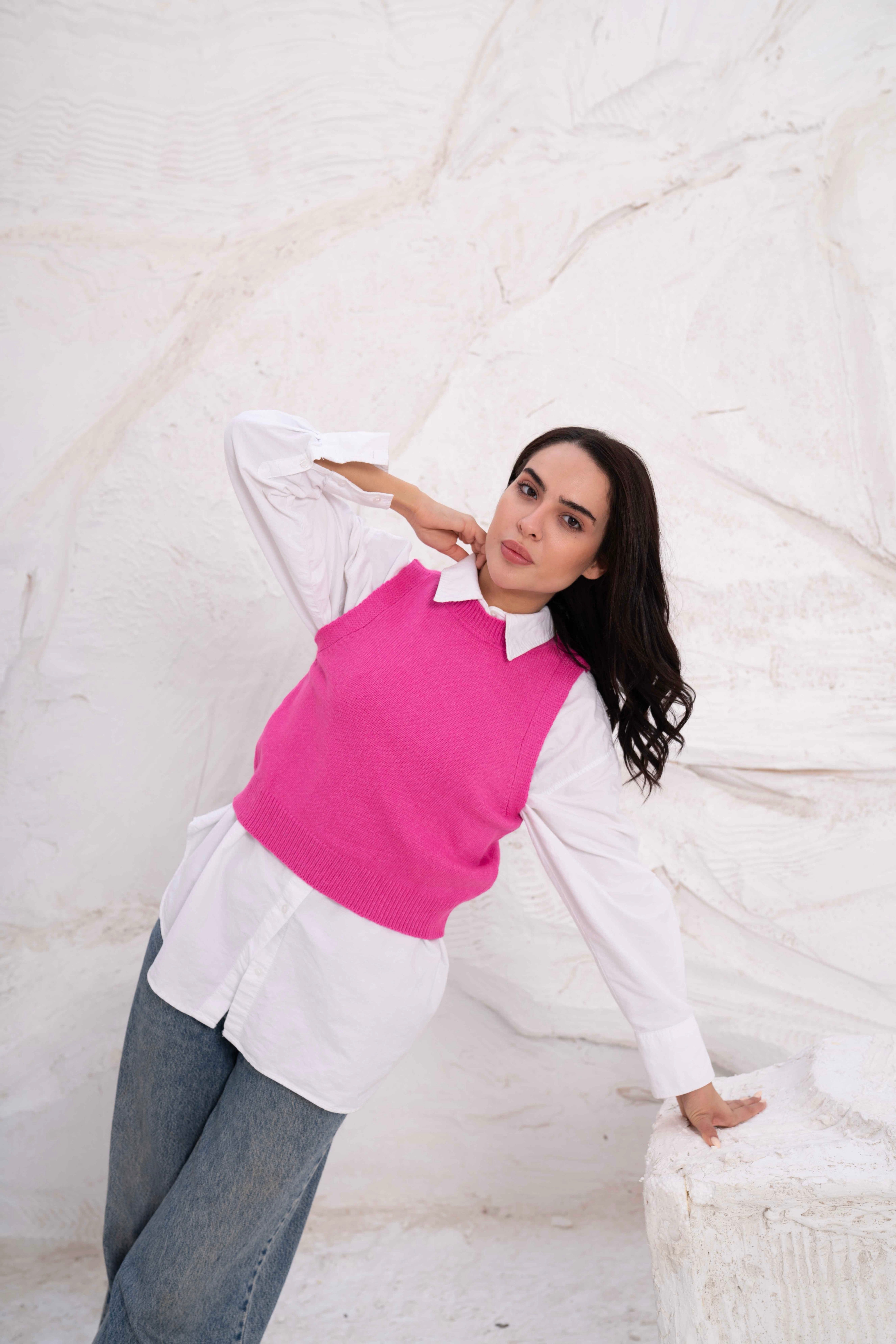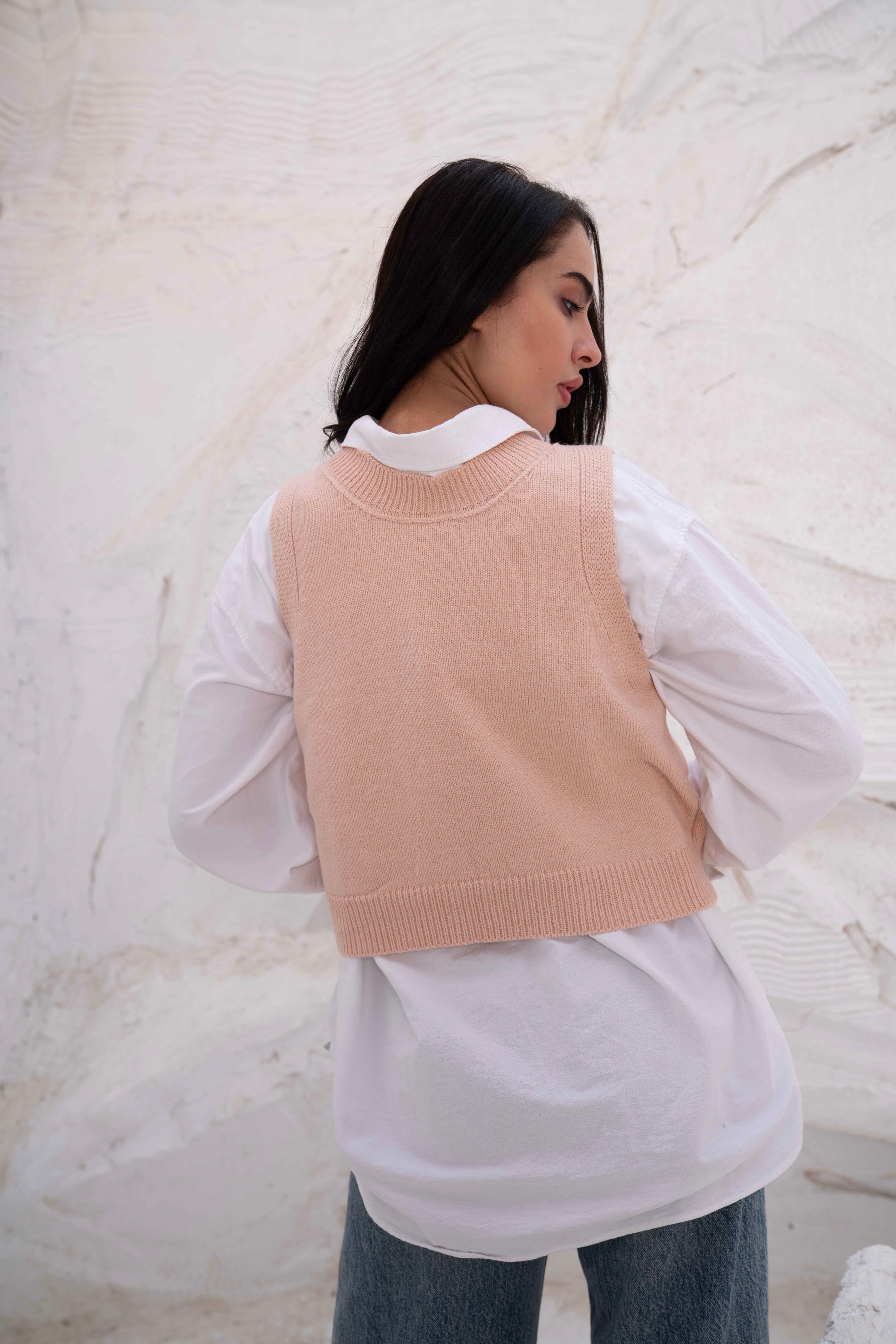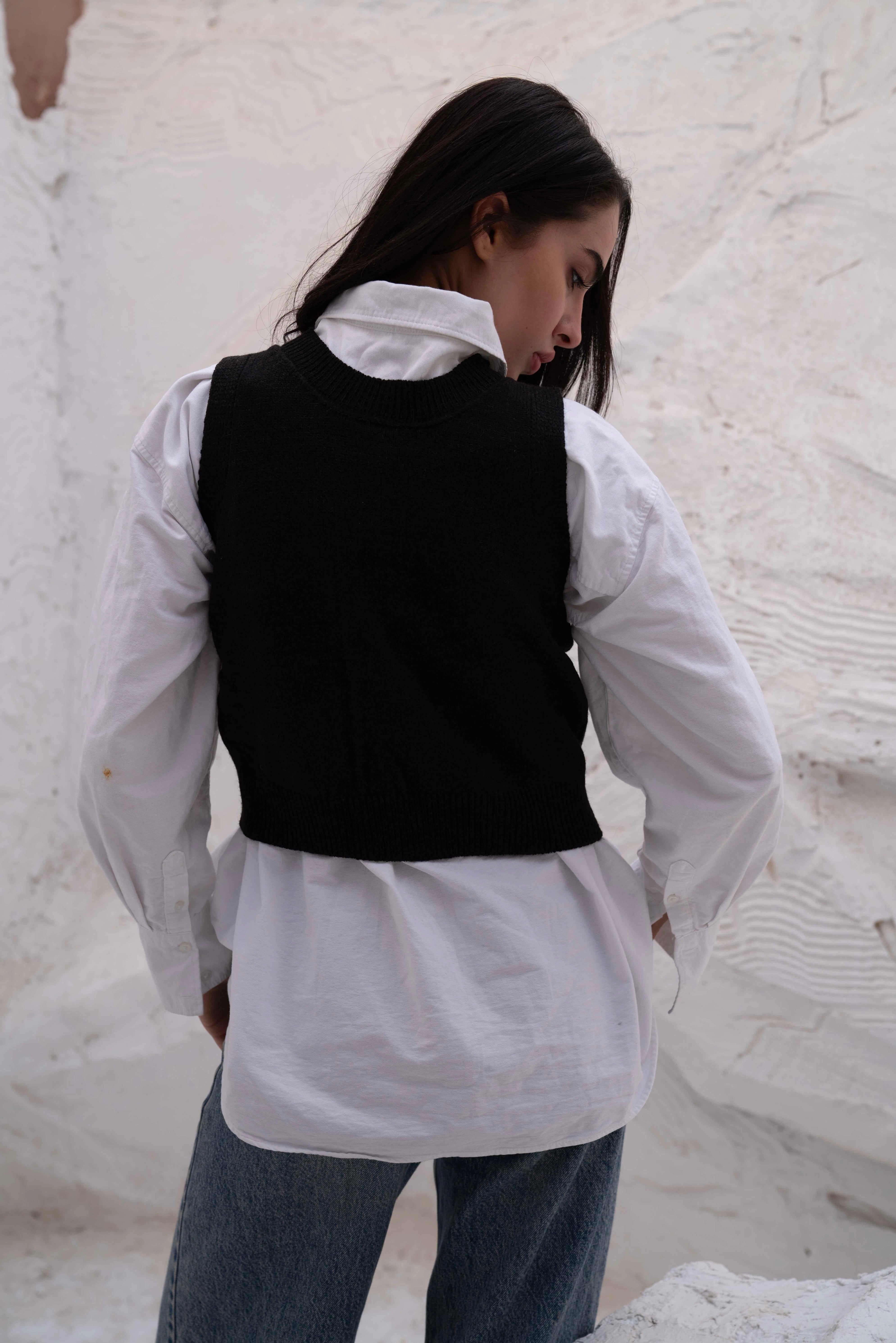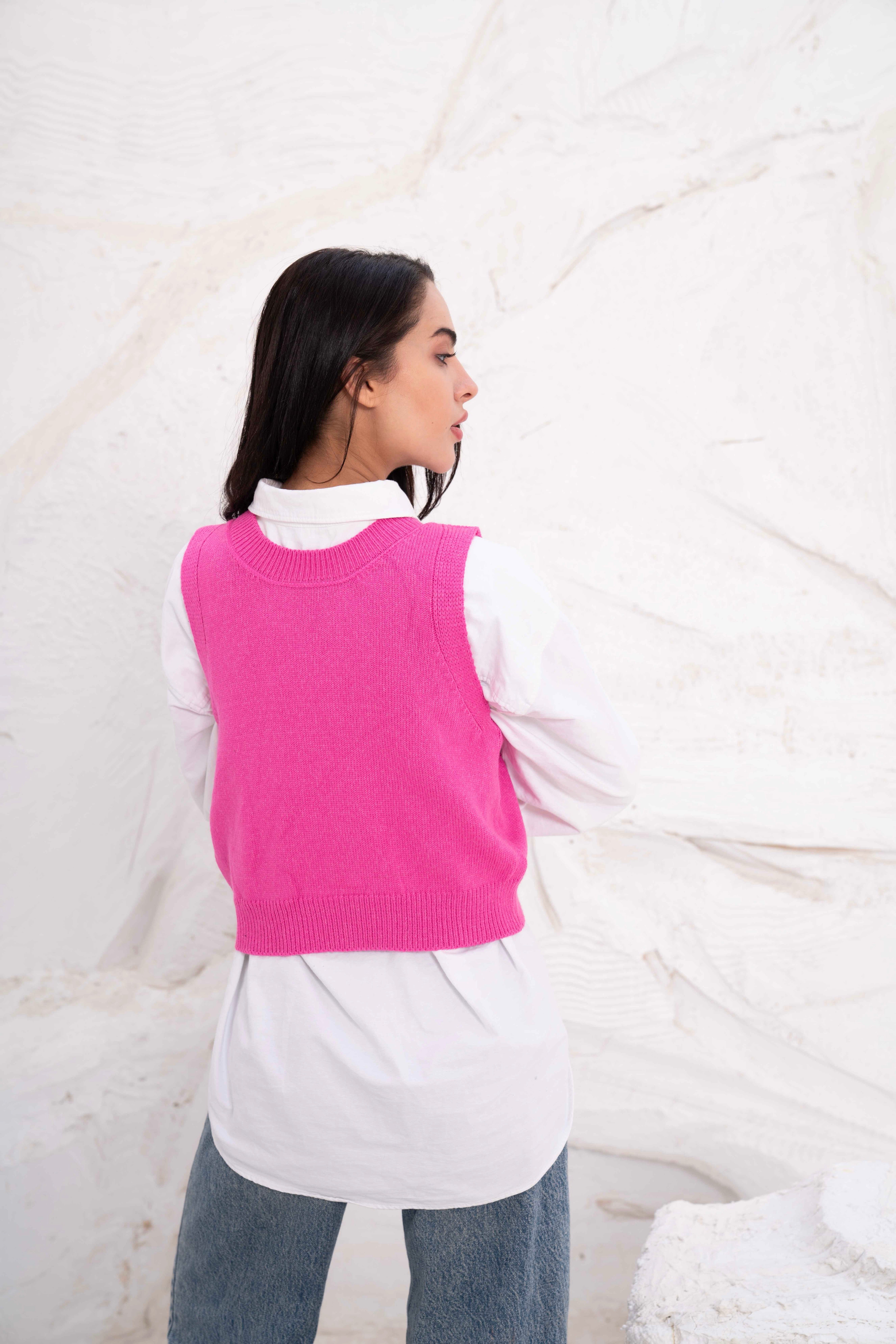 Upgrade your wardrobe with this knitted sleeveless vest for women, the perfect layering piece to achieve a smart and sophisticated look effortlessly. Designed with a modern, minimalistic touch, this vest pairs seamlessly with shirts, blouses, or dresses, making it a versatile addition to your wardrobe.