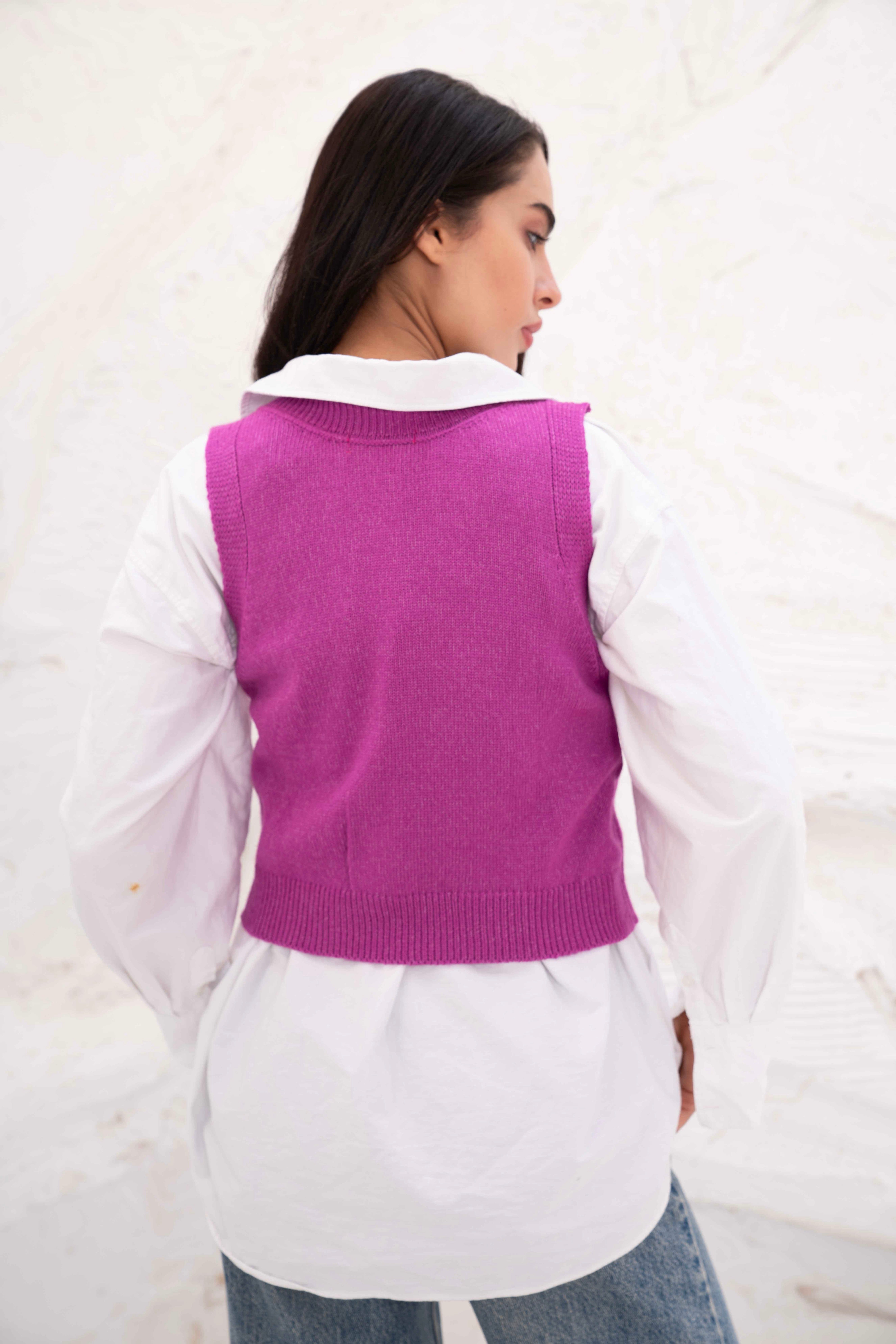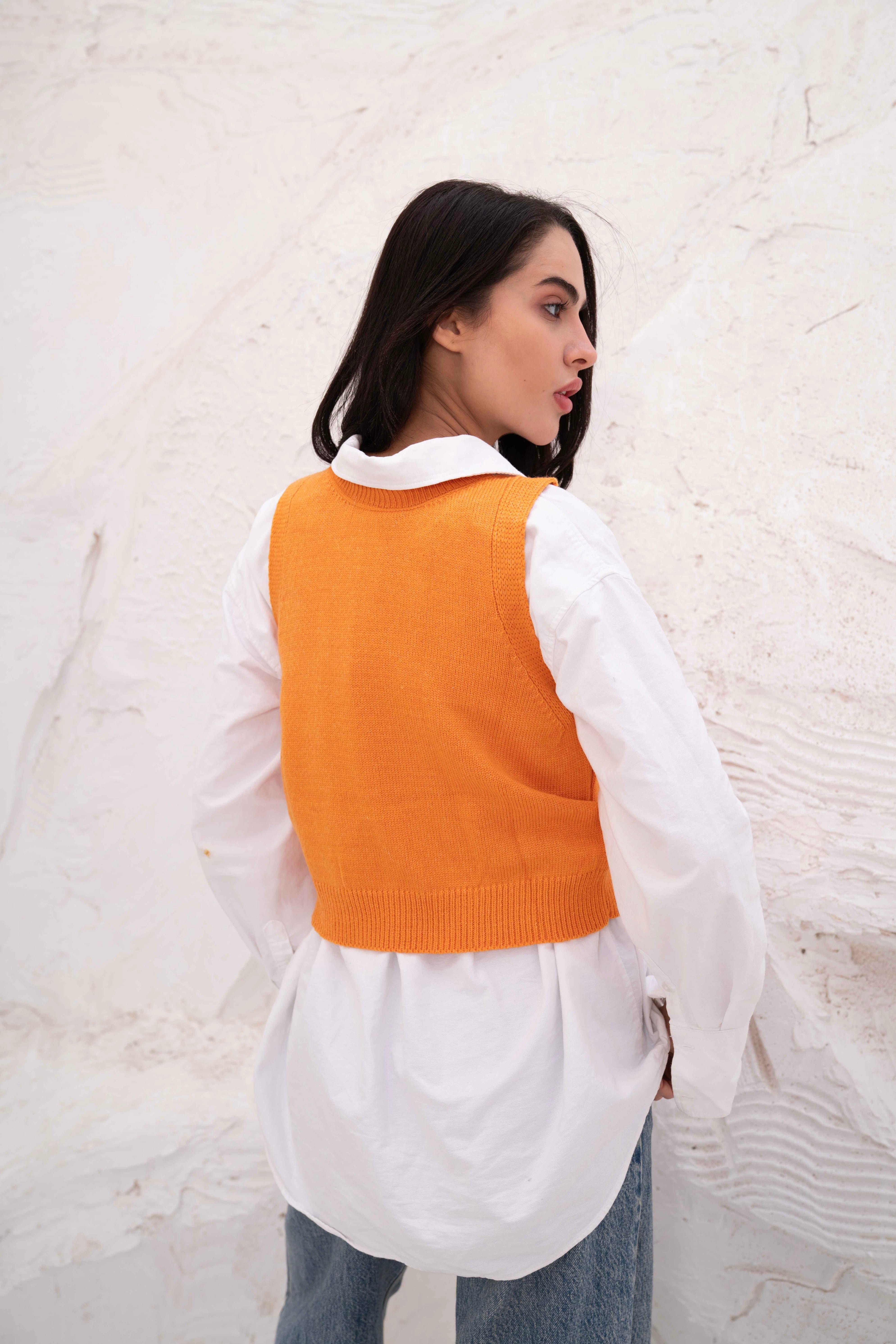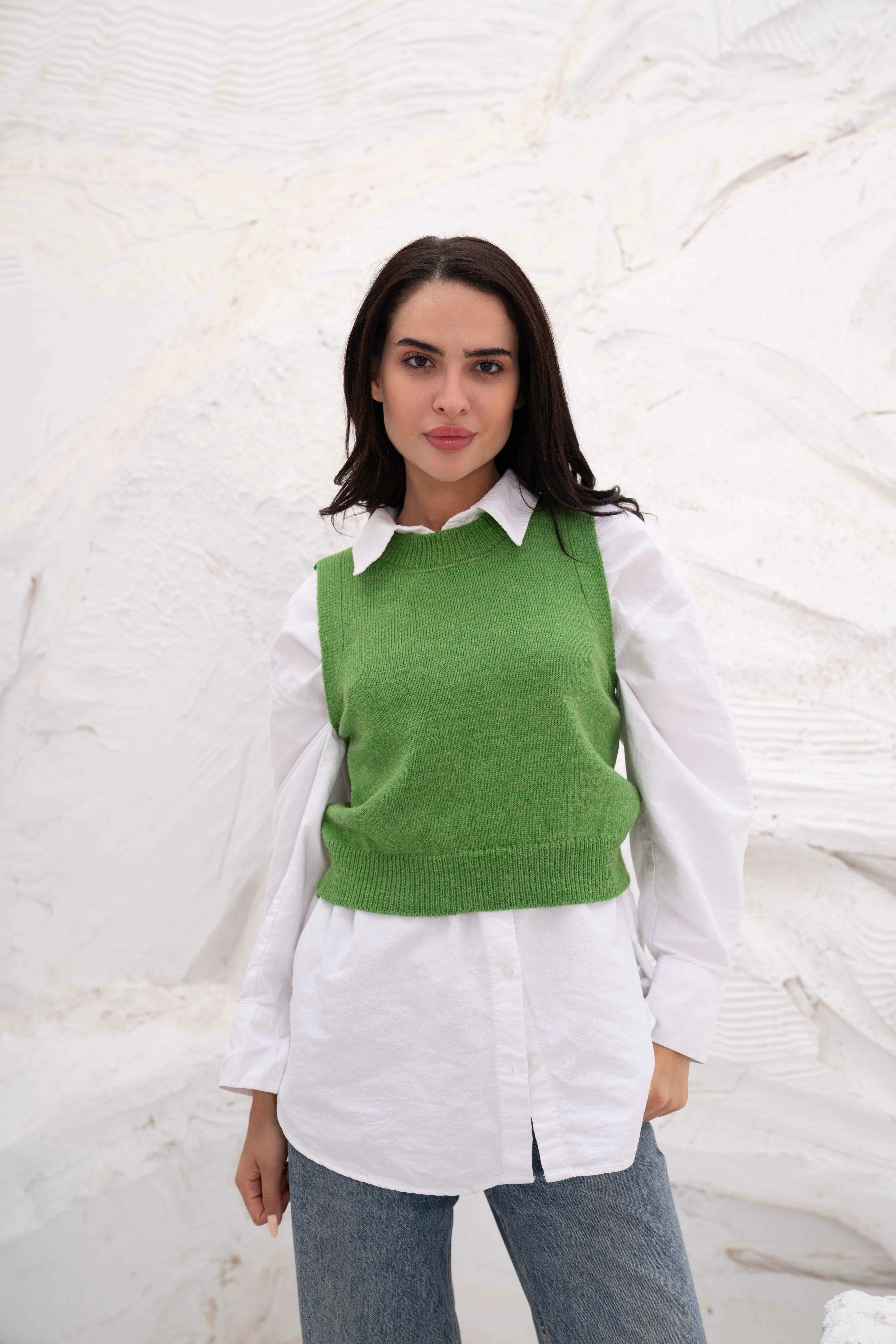 Upgrade your wardrobe with this knitted sleeveless vest for women, the perfect layering piece to achieve a smart and sophisticated look effortlessly. Designed with a modern, minimalistic touch, this vest pairs seamlessly with shirts, blouses, or dresses, making it a versatile addition to your wardrobe.