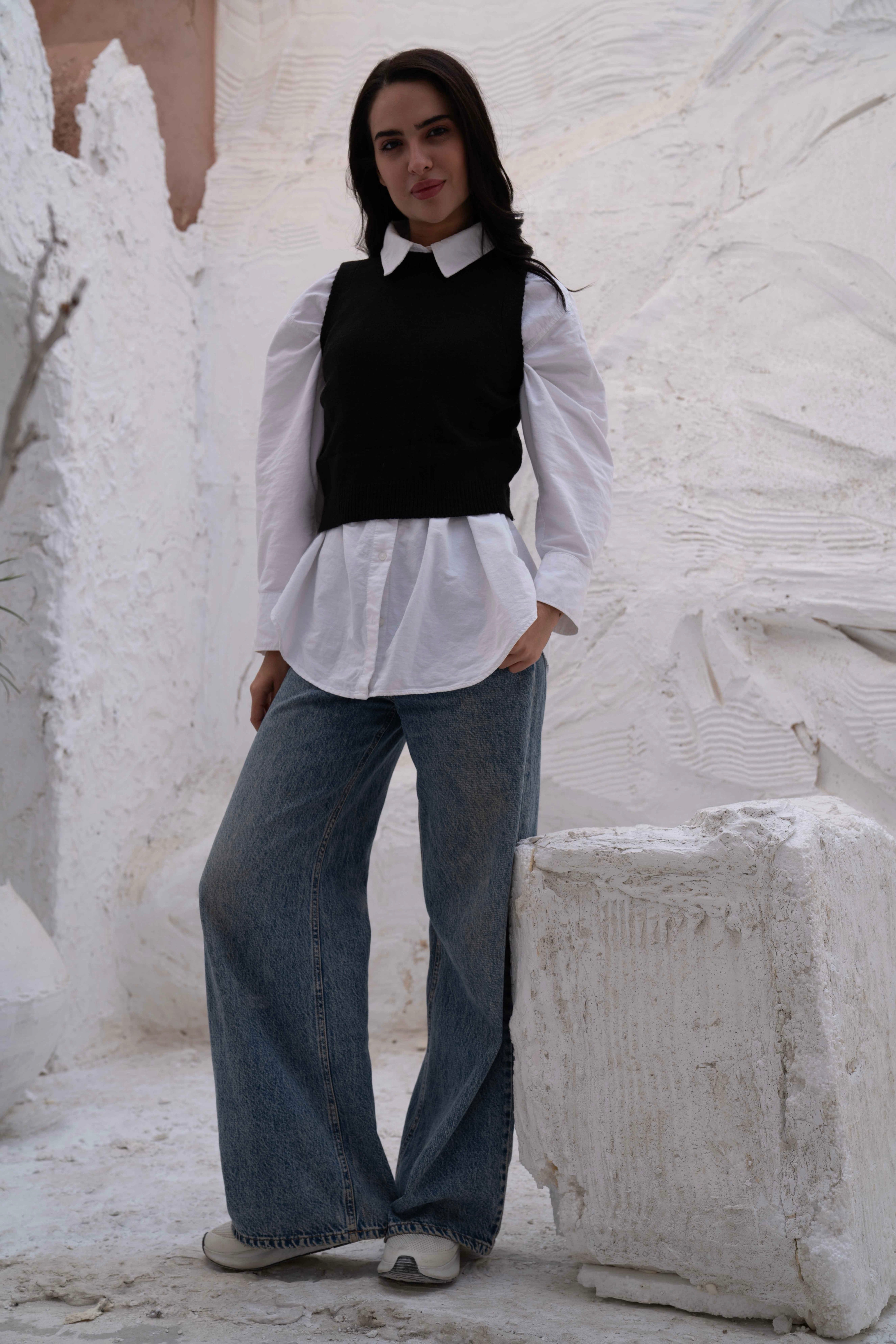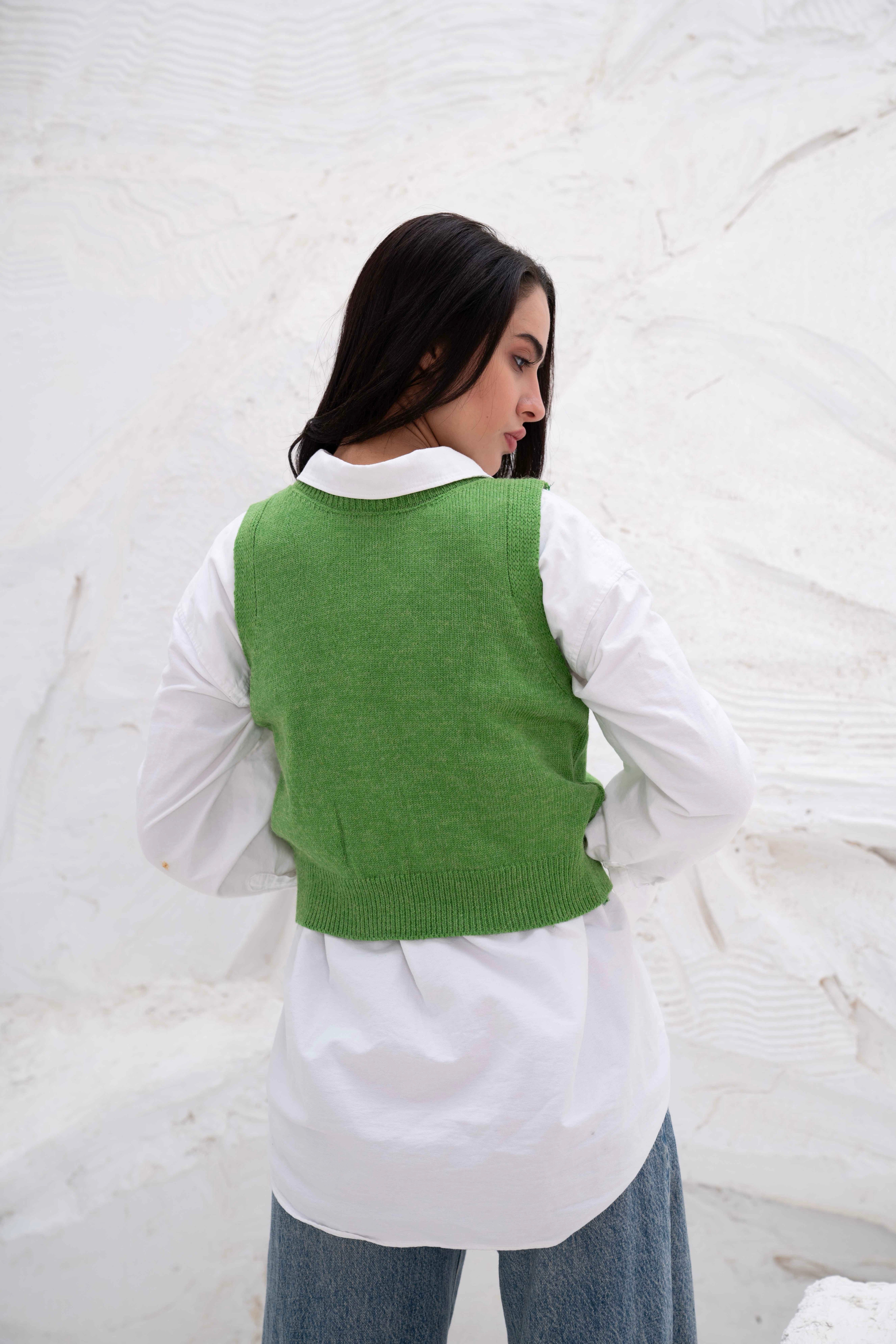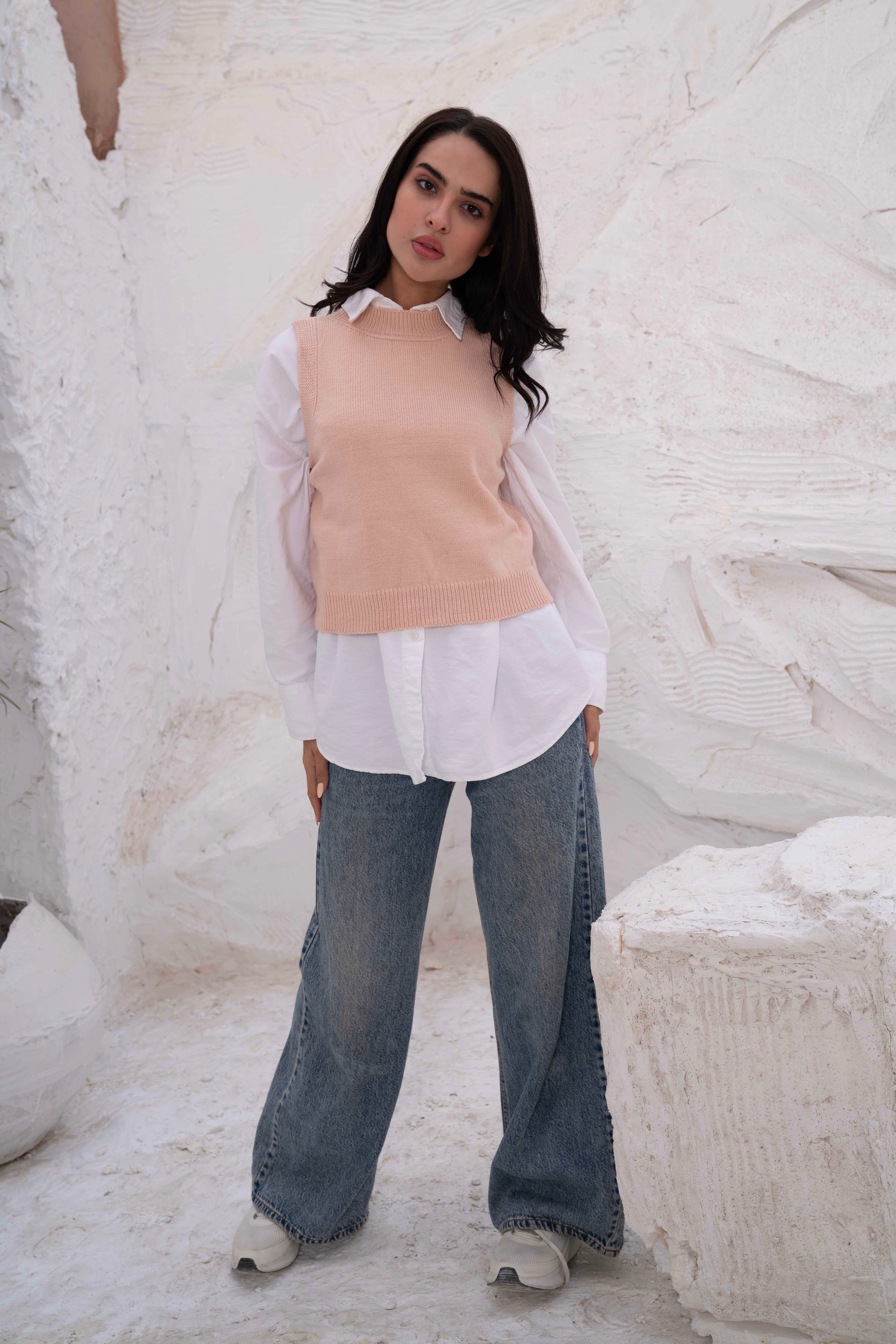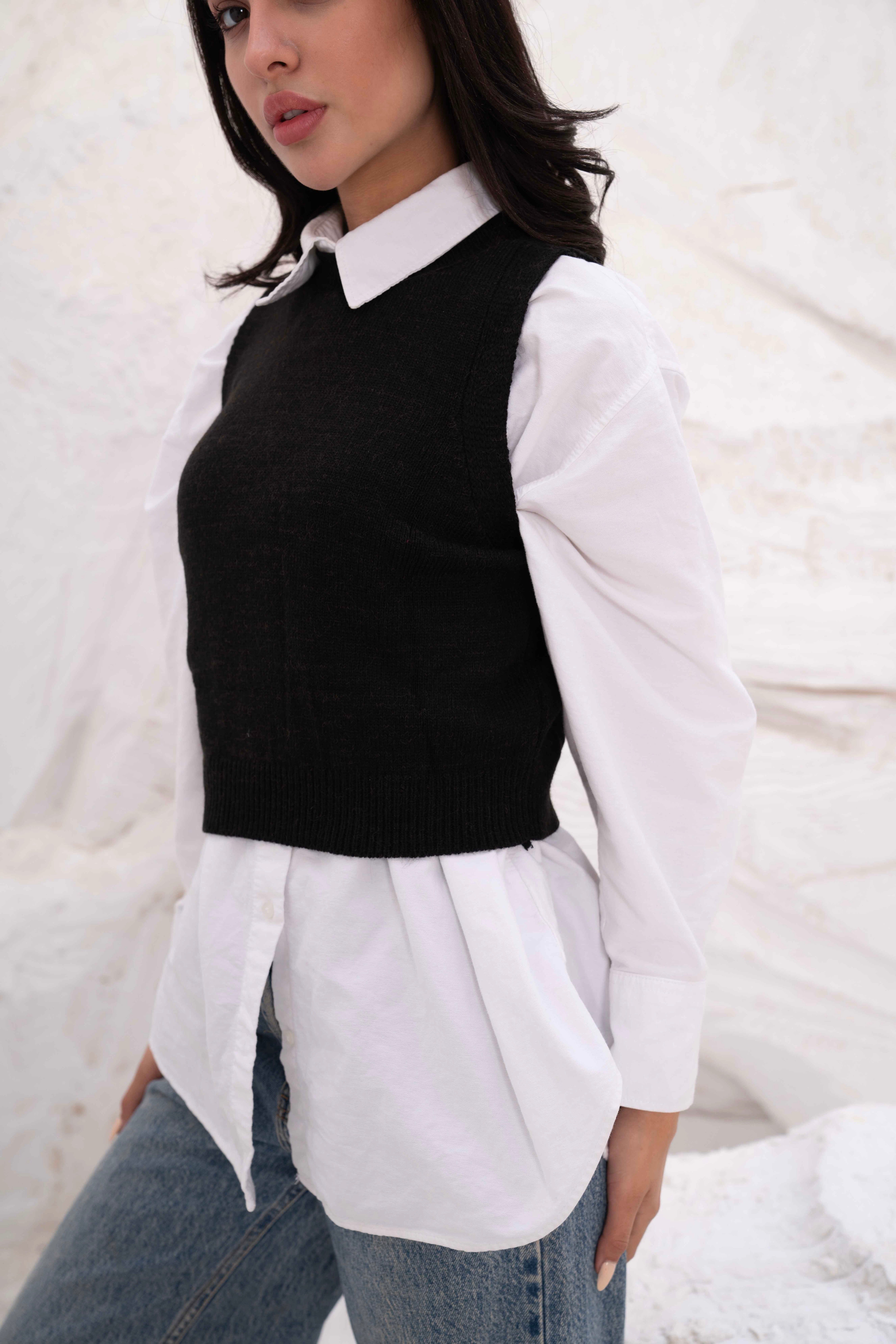 Upgrade your wardrobe with this knitted sleeveless vest for women, the perfect layering piece to achieve a smart and sophisticated look effortlessly. Designed with a modern, minimalistic touch, this vest pairs seamlessly with shirts, blouses, or dresses, making it a versatile addition to your wardrobe.