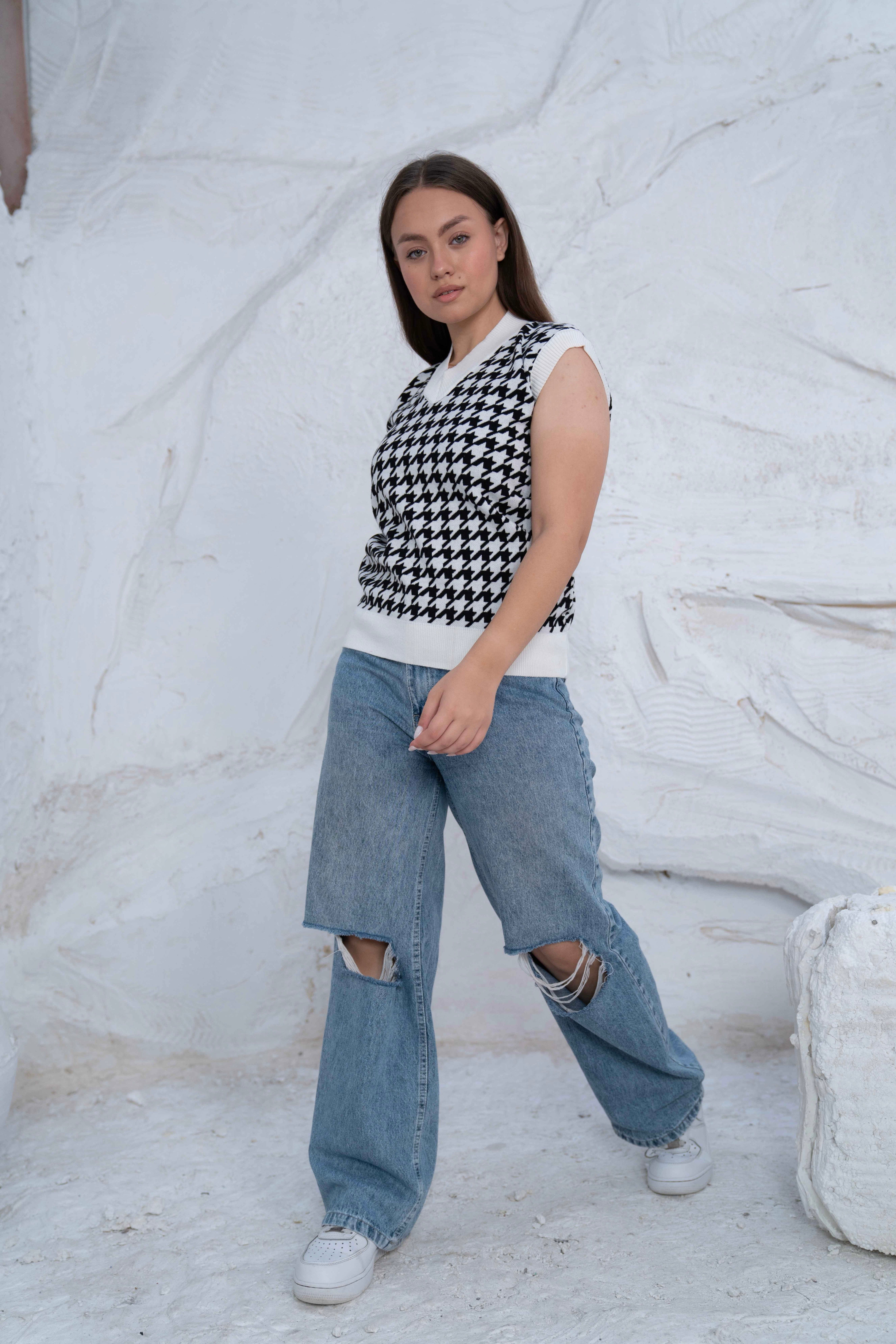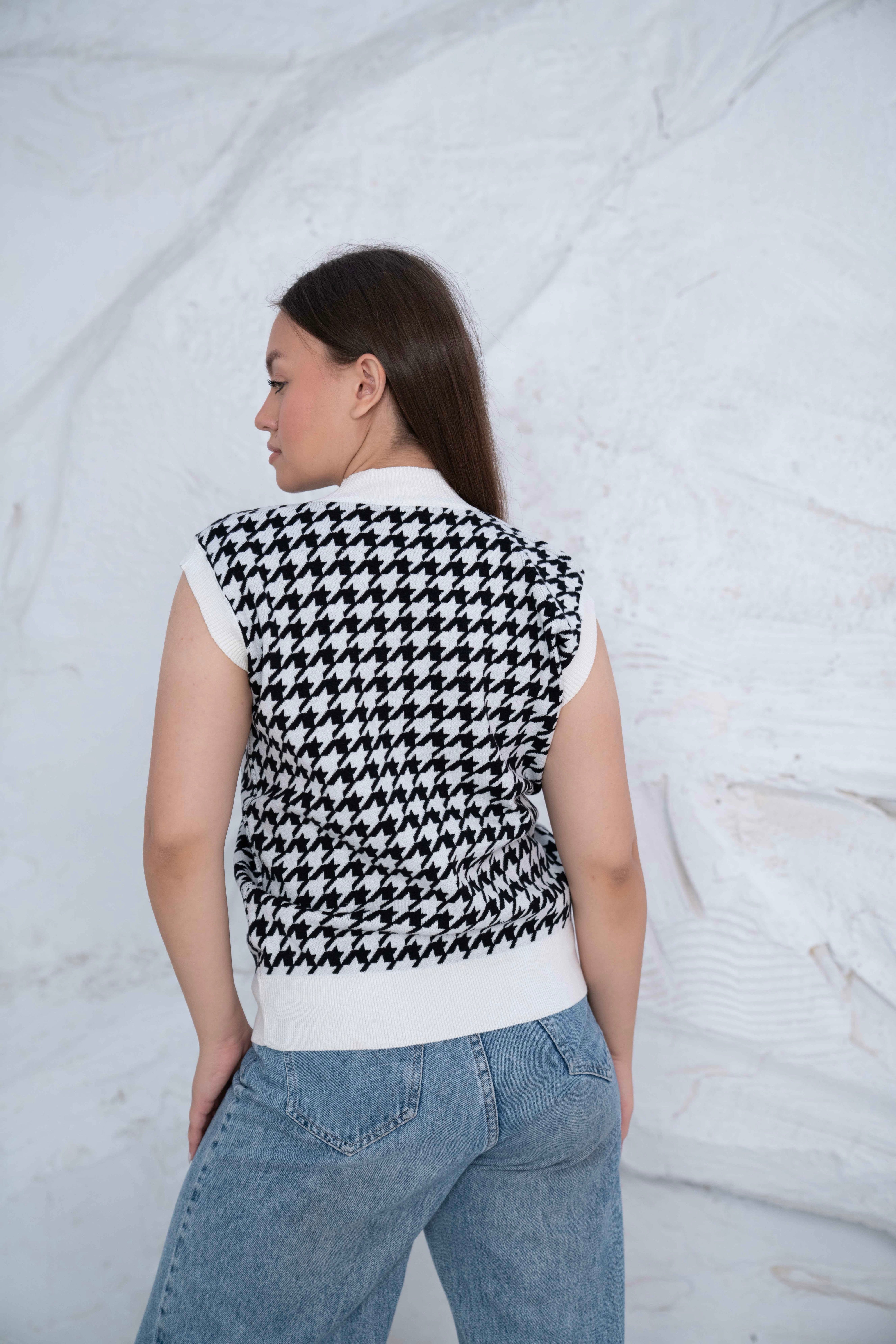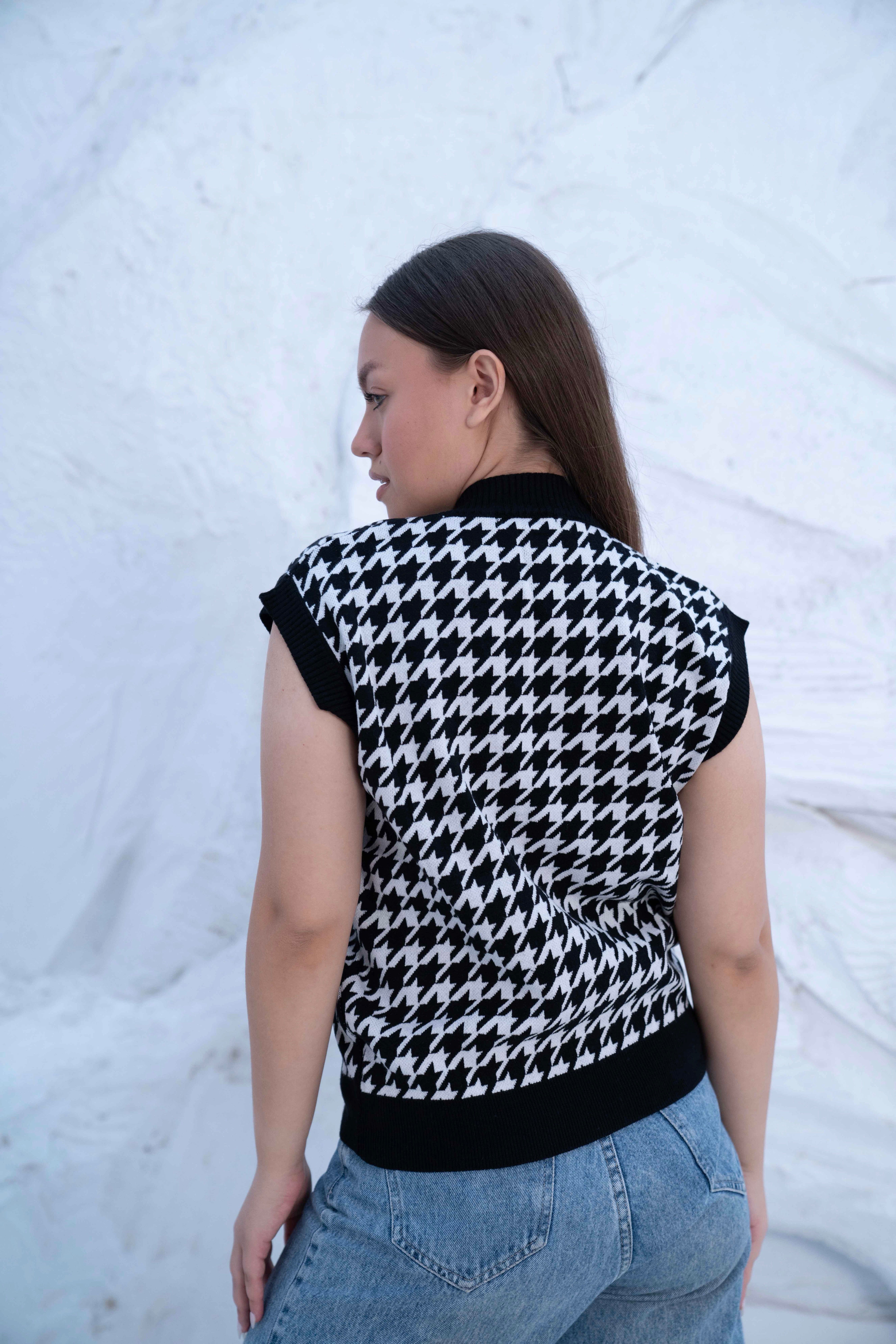 Upgrade your style with this elegant women's houndstooth knit vest, designed to be a must-have layering piece for every wardrobe. Featuring a classic V-neck and a chic sleeveless design, this vest is perfect for casual outings, smart office looks, or evening gatherings. Crafted from premium, breathable knit fabric, it combines comfort with a stylish finish, making it ideal for layering over shirts, turtlenecks, or blouses. Its timeless houndstooth pattern ensures you stay on-trend while effortlessly elevating your look. Pair it with jeans, trousers, or skirts for a versatile outfit that works for all seasons.