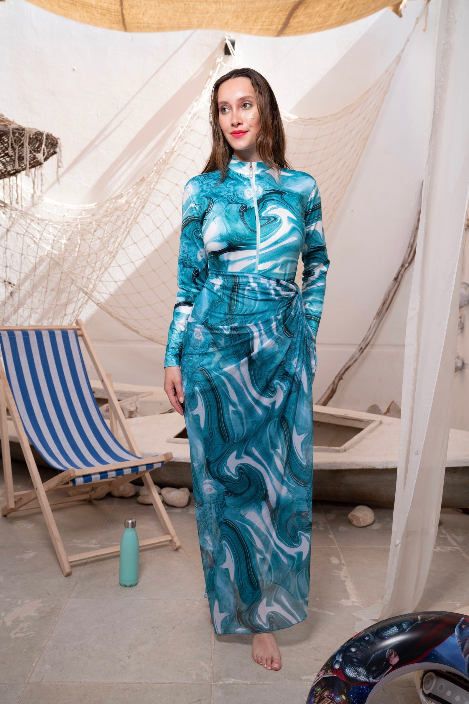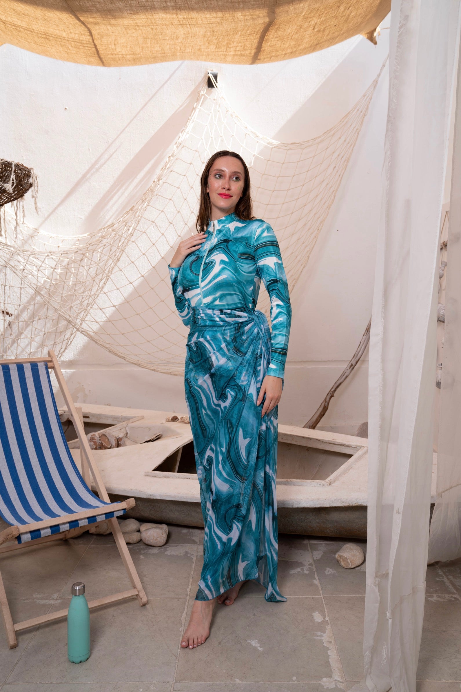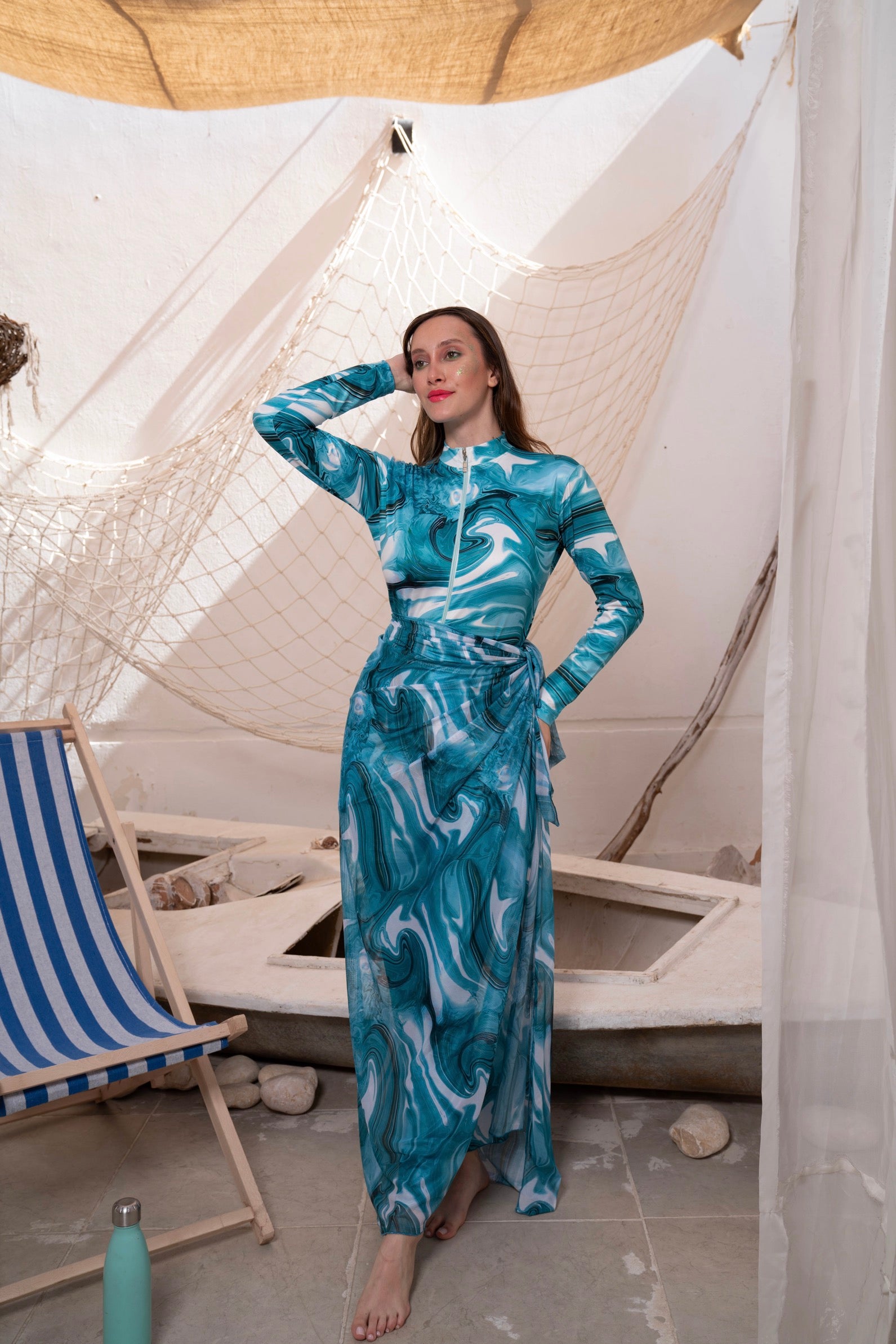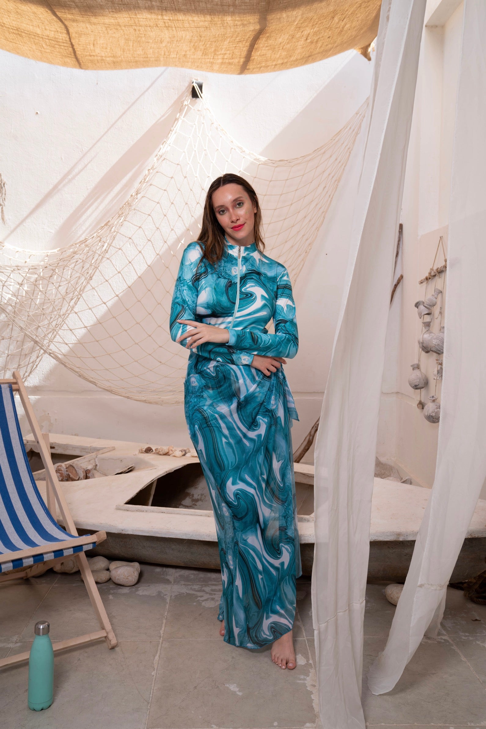 - Sun Protection: Long sleeves and a high neckline protect your skin from the sun.