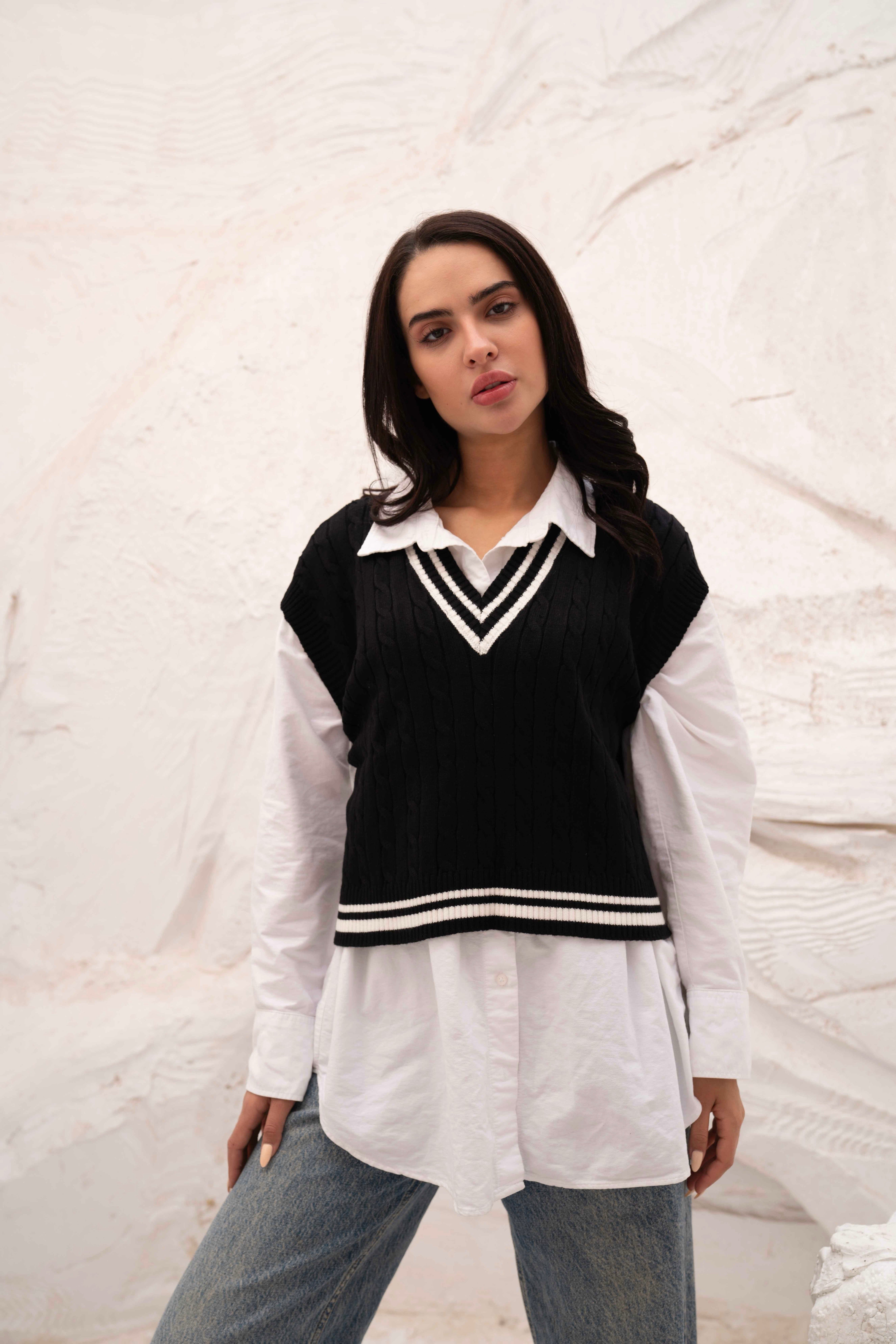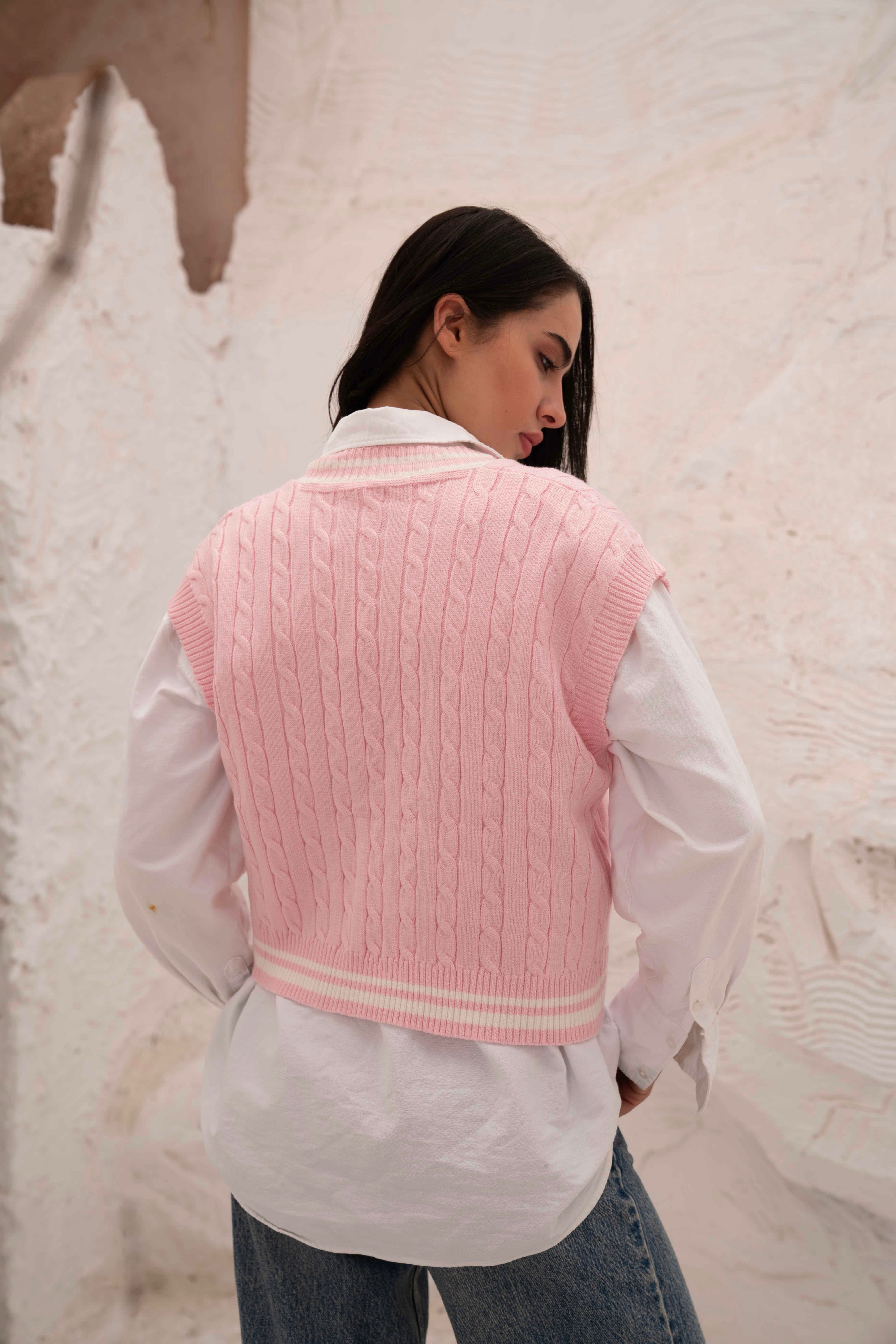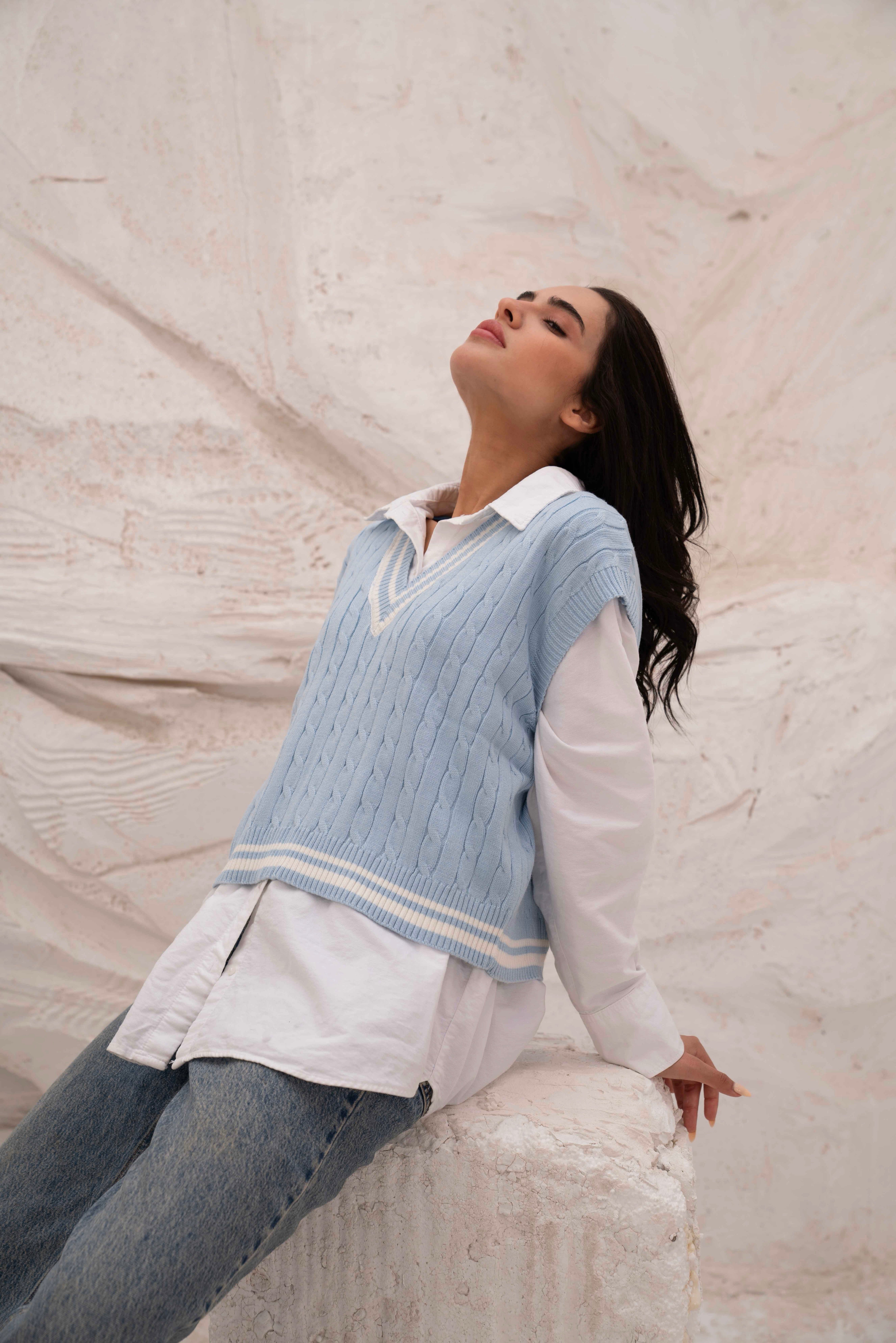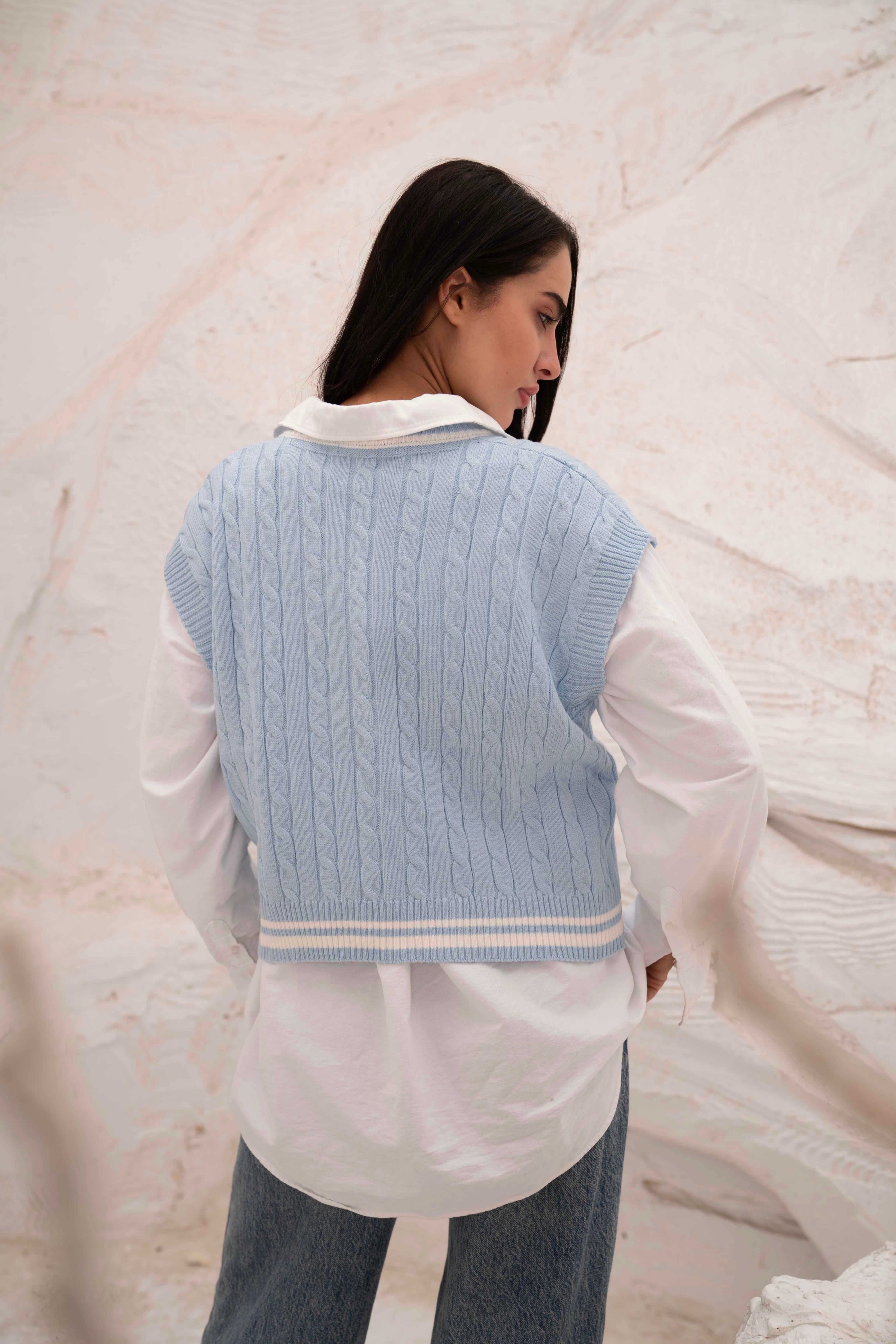 This sweater vest is perfect for women searching for "trendy sweater vests for women in Egypt," "cable knit tops for layering," or "versatile women’s knitwear styles."