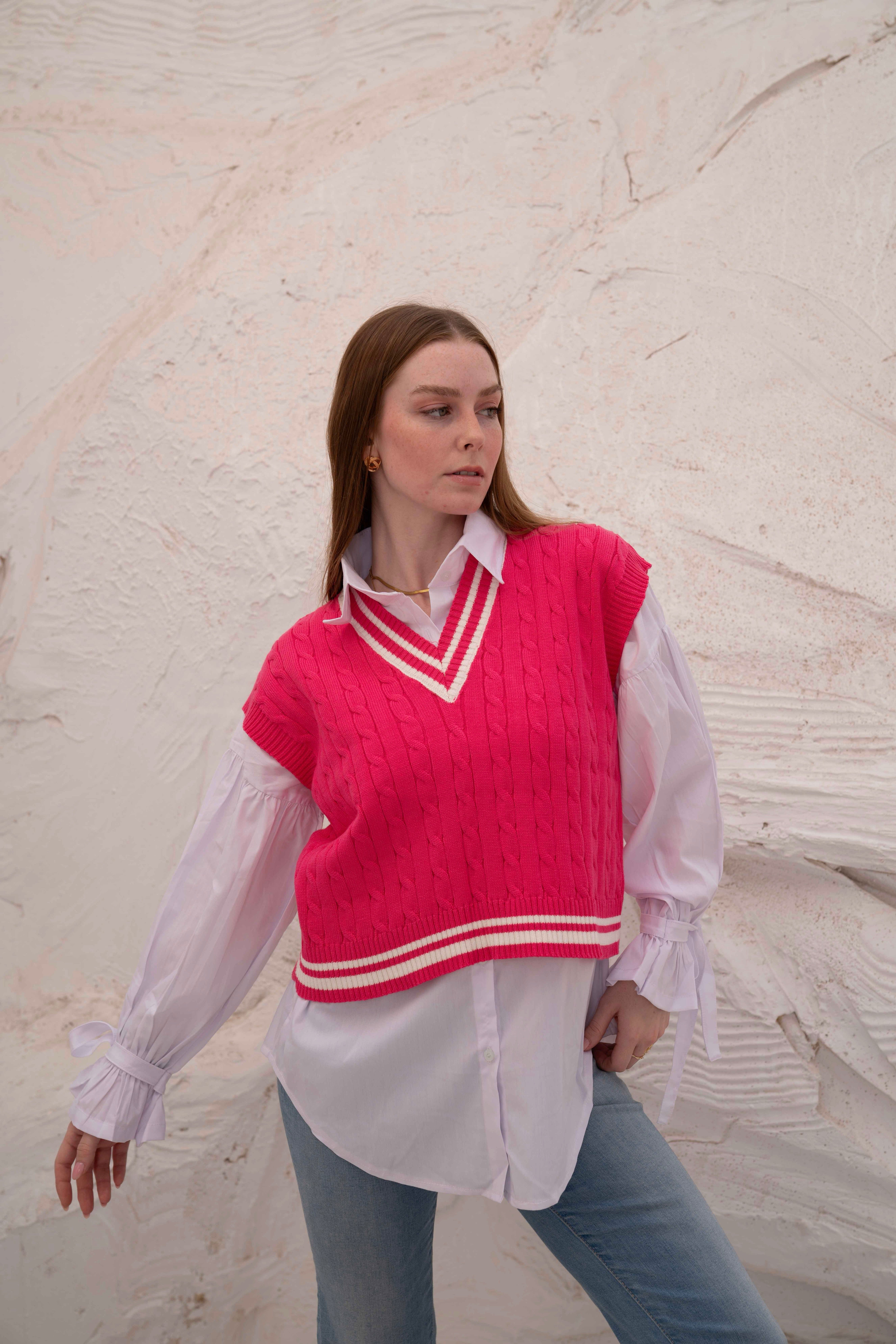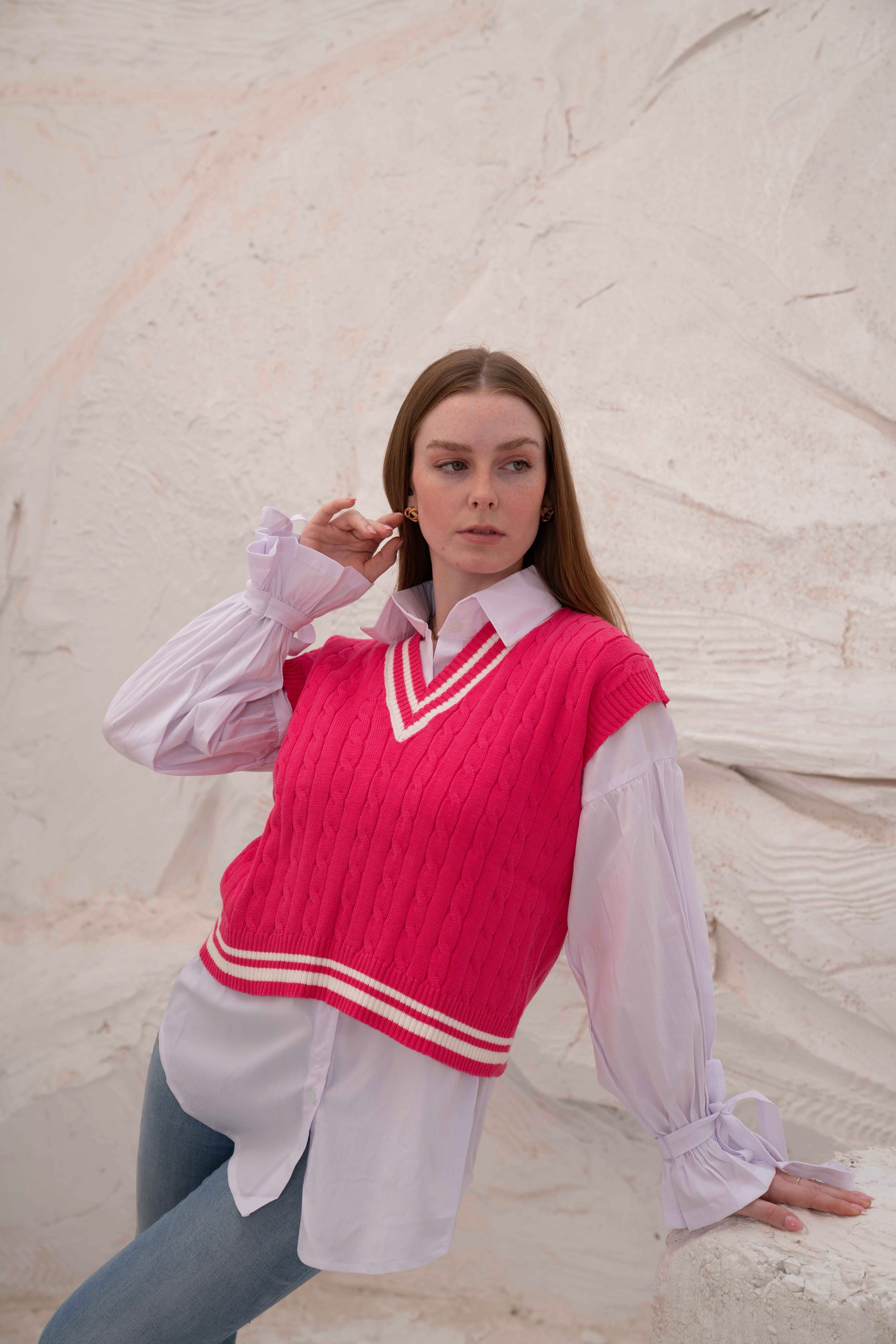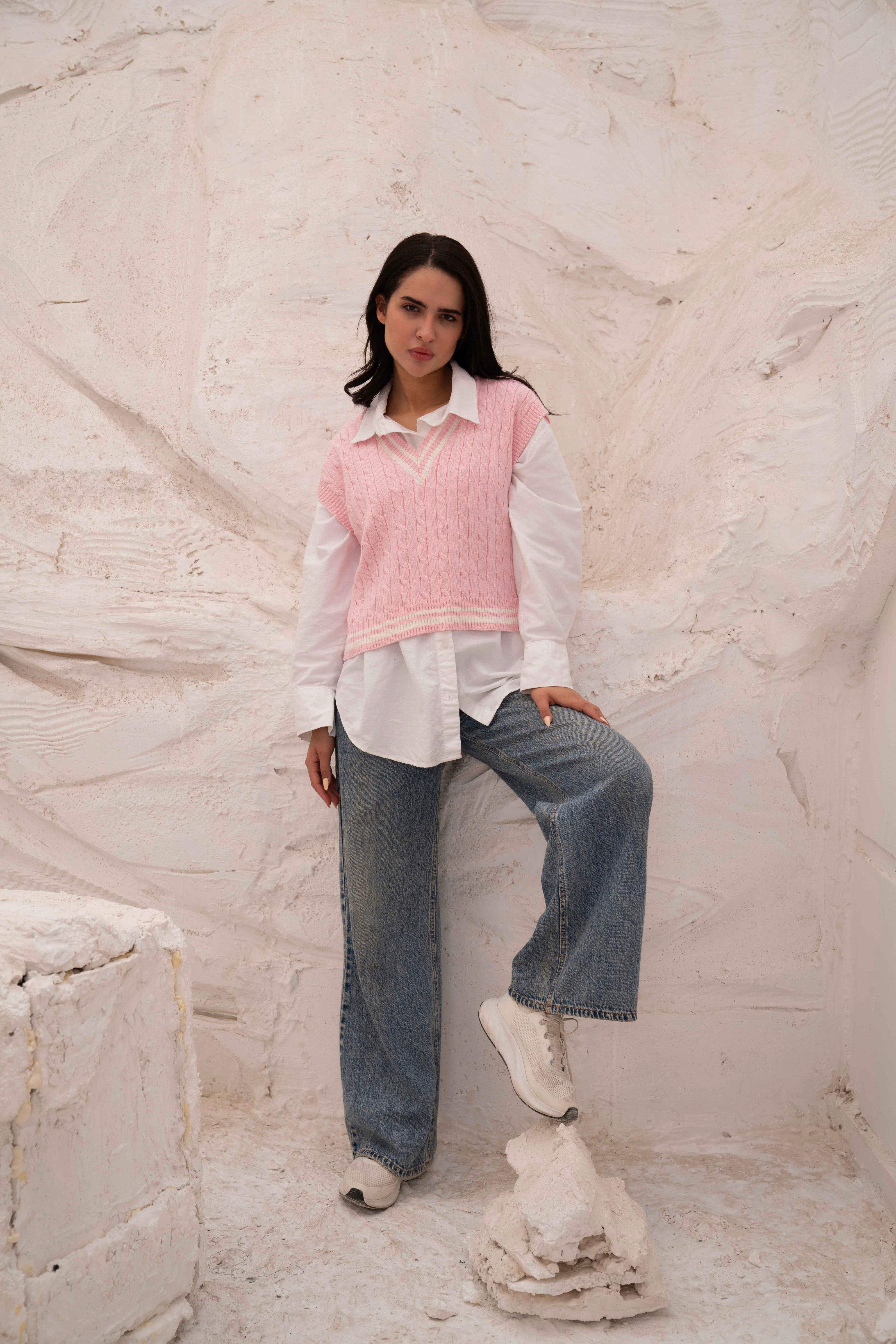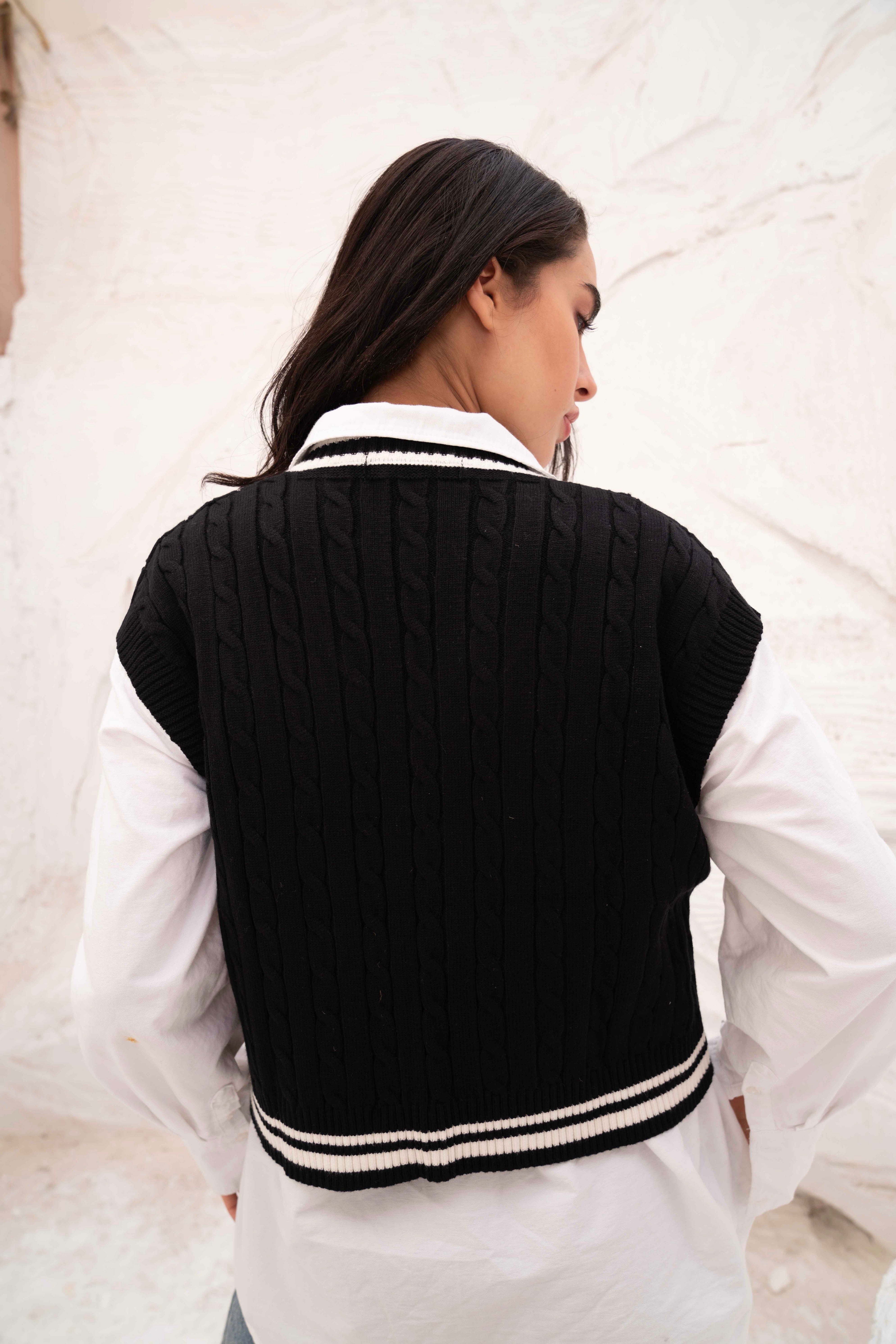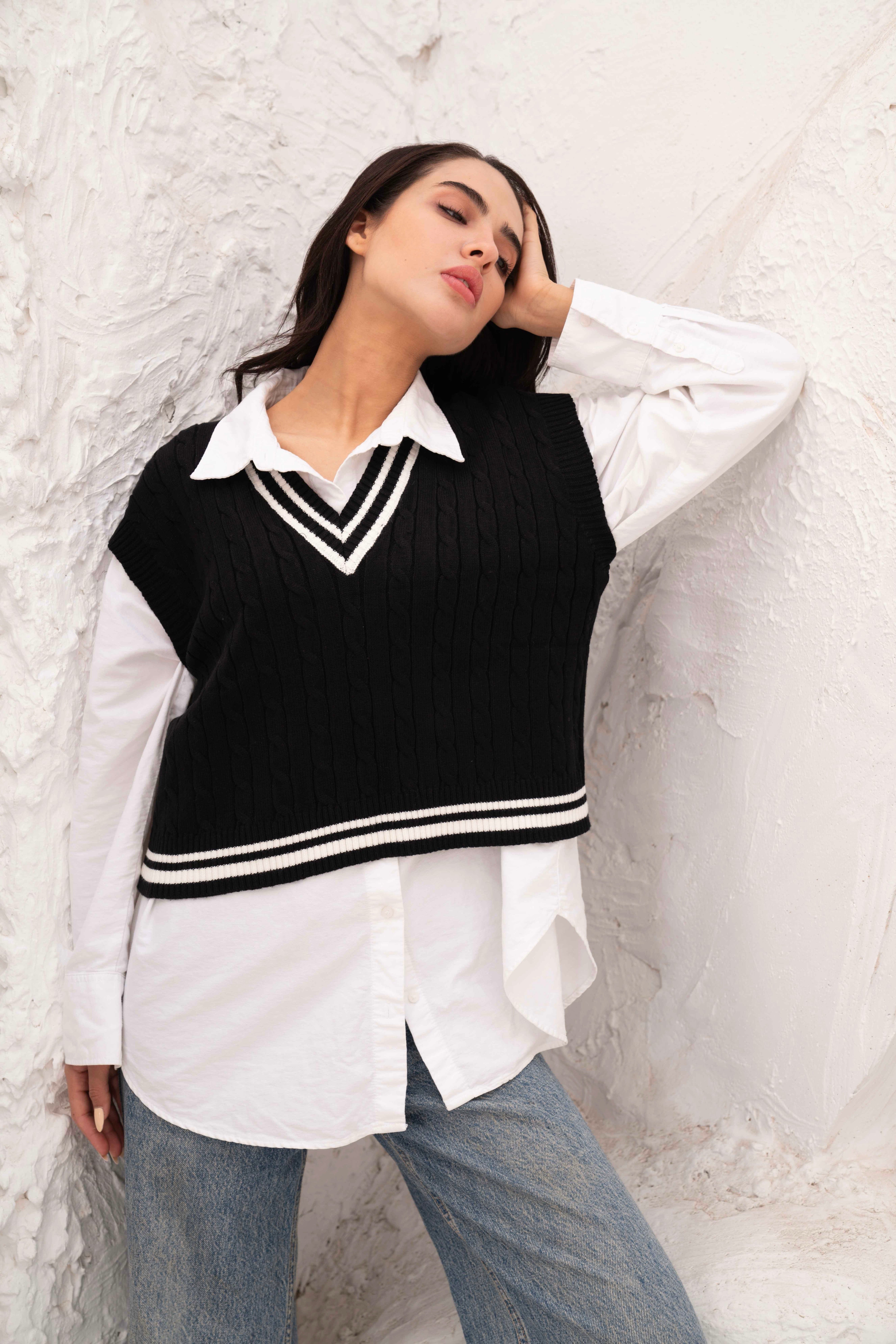 Its timeless cable knit pattern and flattering V-neckline make it a versatile piece for casual outings, workwear, or semi-formal events. Pair it effortlessly with jeans, skirts, or tailored pants for a polished and trendy ensemble. Whether you’re heading to a brunch, meeting, or casual day out, this sweater vest adds a touch of elegance to your style.