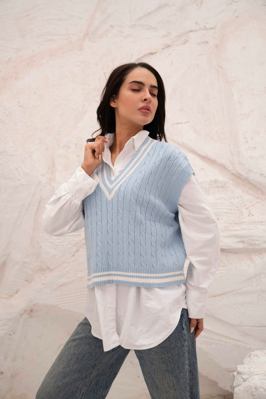 Cable Knit V-Neck Sweater Vest
