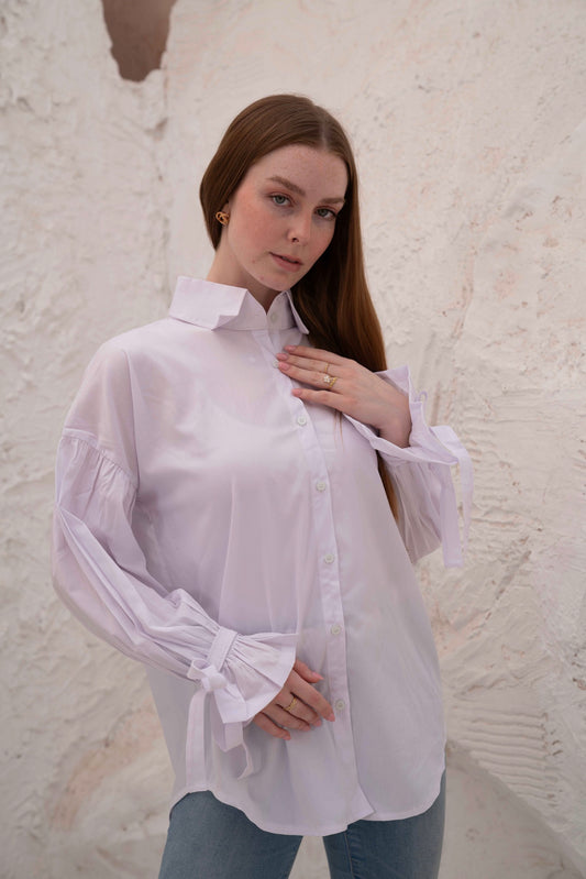 Oversized White Shirt with Tie Sleeves