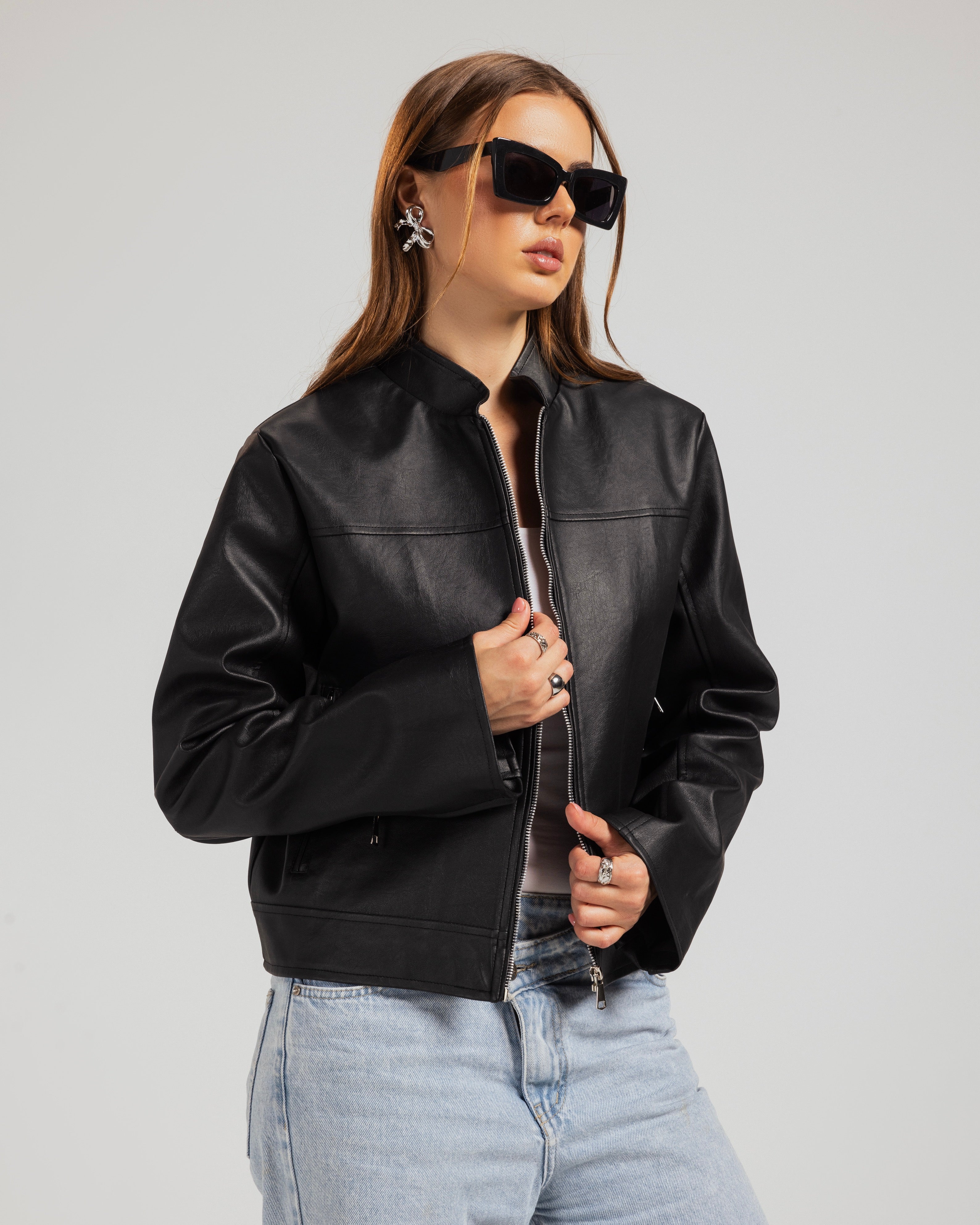 Embrace effortless cool with our Cropped Faux Leather Bomber Jacket - the ultimate fusion of classic bomber styling and contemporary cropped proportions. This sleek, versatile jacket brings instant edge to any outfit while maintaining the timeless appeal that makes leather jackets an eternal wardrobe essential.