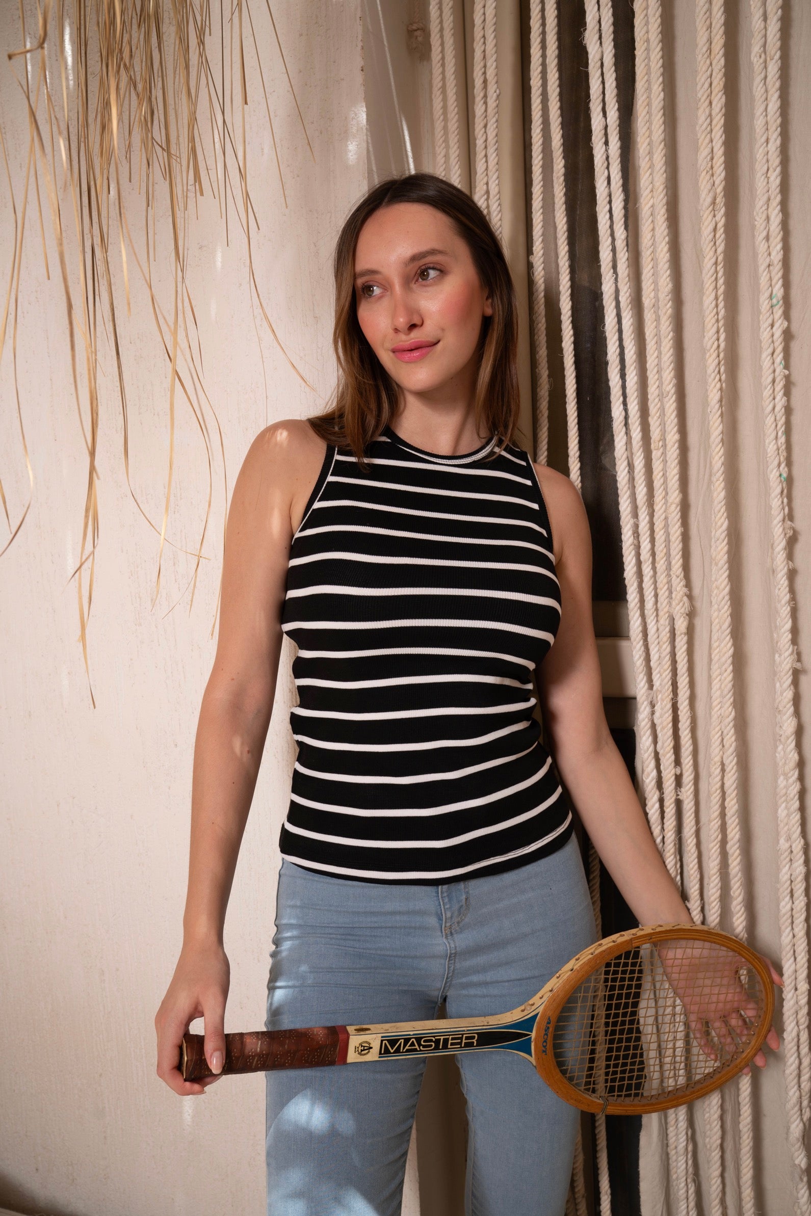Whether you're heading to a casual brunch or a summer outing, this Striped Sleeveless Top will keep you looking stylish and feeling comfortable. Experience the luxury of high-quality cotton and the timeless appeal of classic stripes with this essential wardrobe addition.