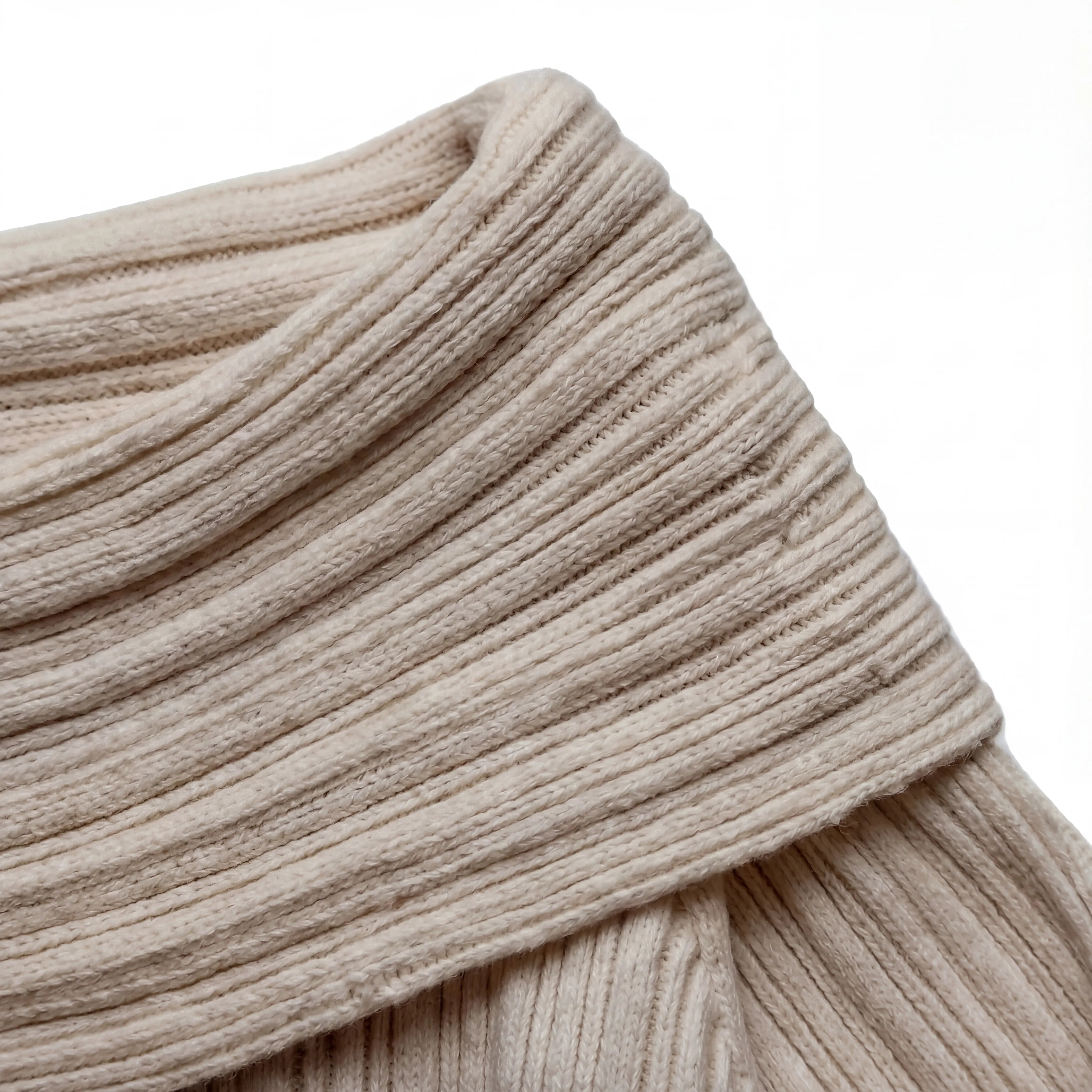 - The ribbed fabric is stretchy and can accommodate a range of sizes.