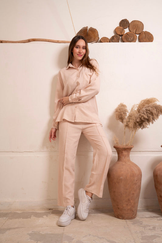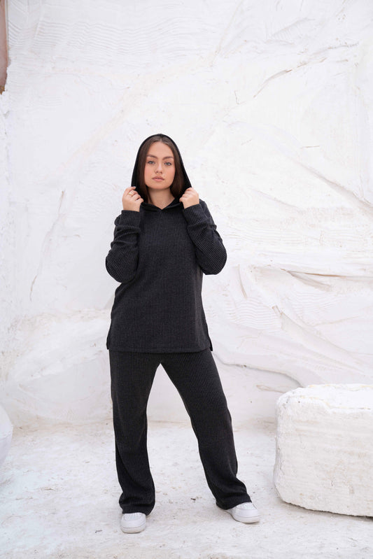 Elevate your loungewear collection with this Women's Turkish Rib Hooded Lounge Set in a stunning Mocha Brown shade. Crafted from high-quality Turkish ribbed material, this two-piece outfit combines luxury and comfort, making it perfect for women in Egypt looking for a stylish yet functional wardrobe staple. The set features a hooded top with side slits for added mobility and matching wide-leg pants for a relaxed fit.